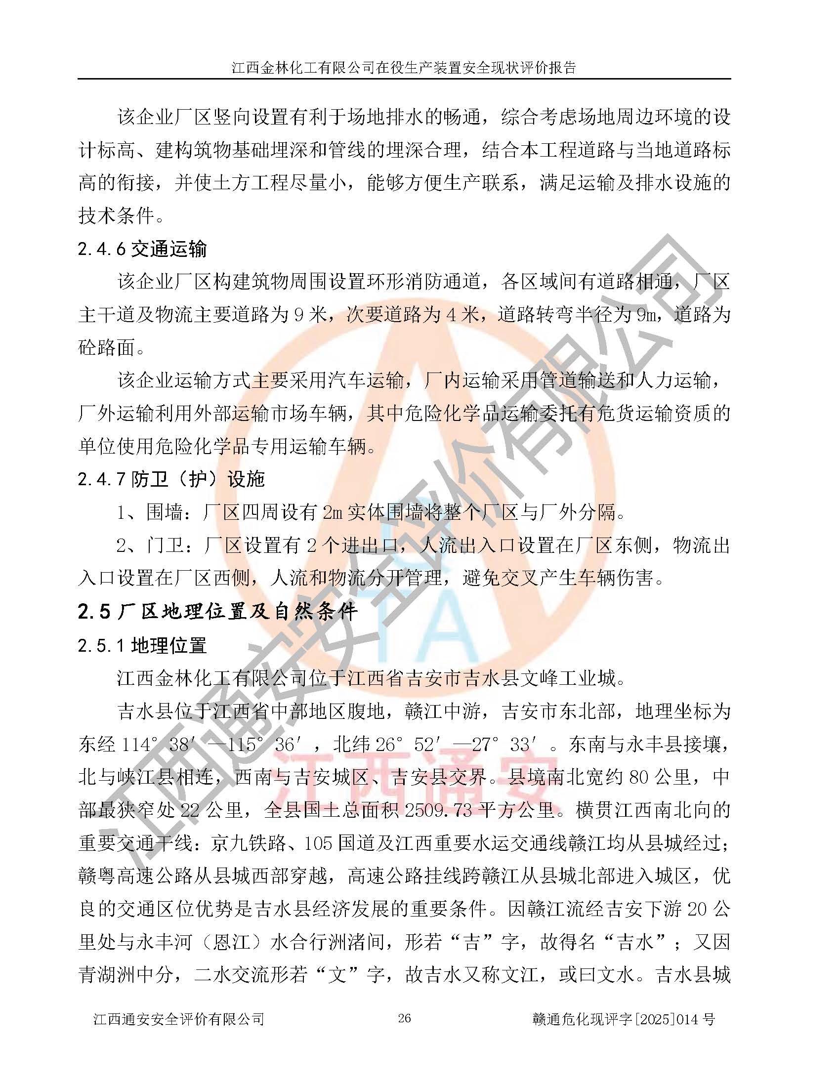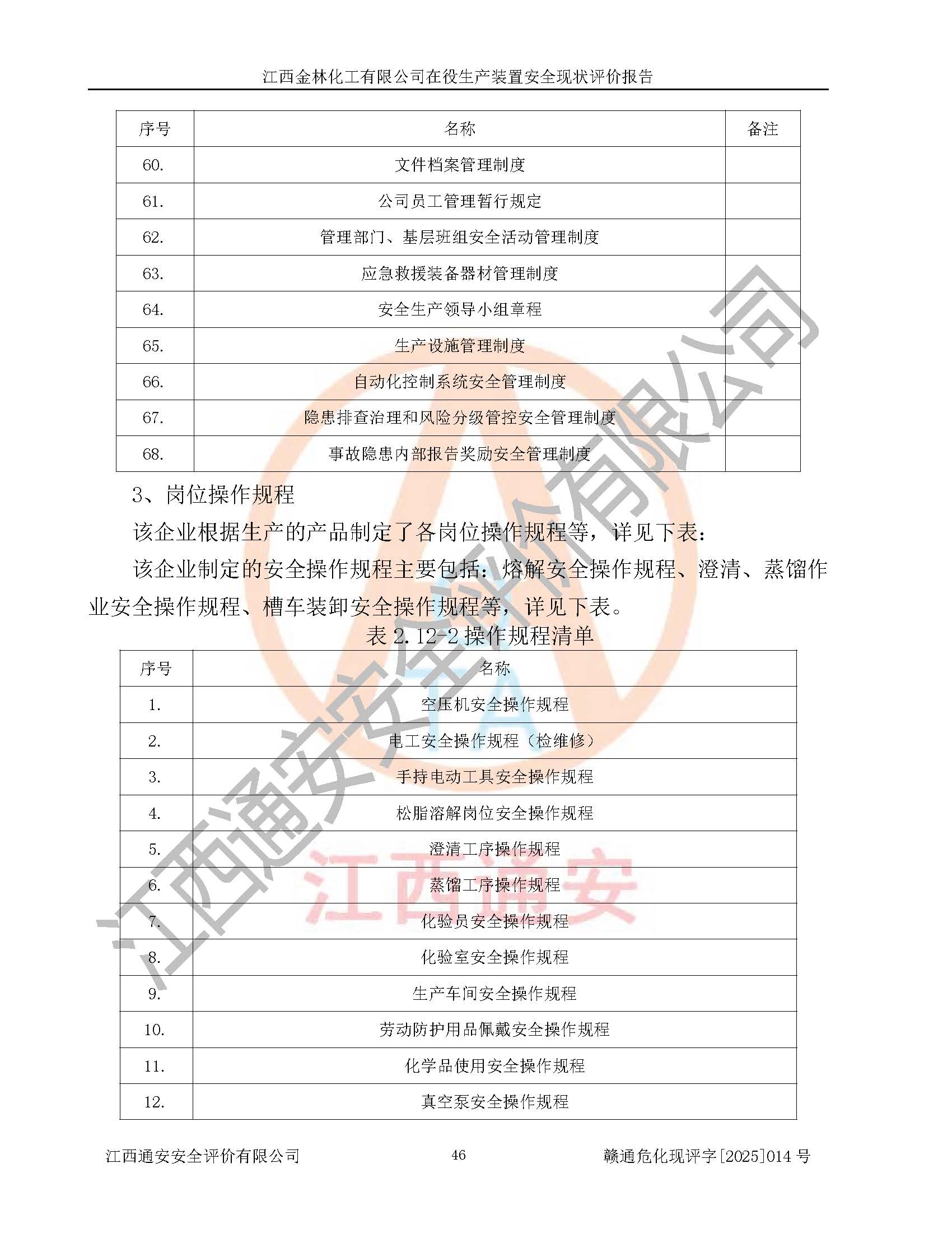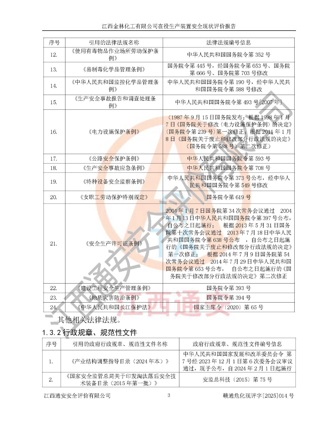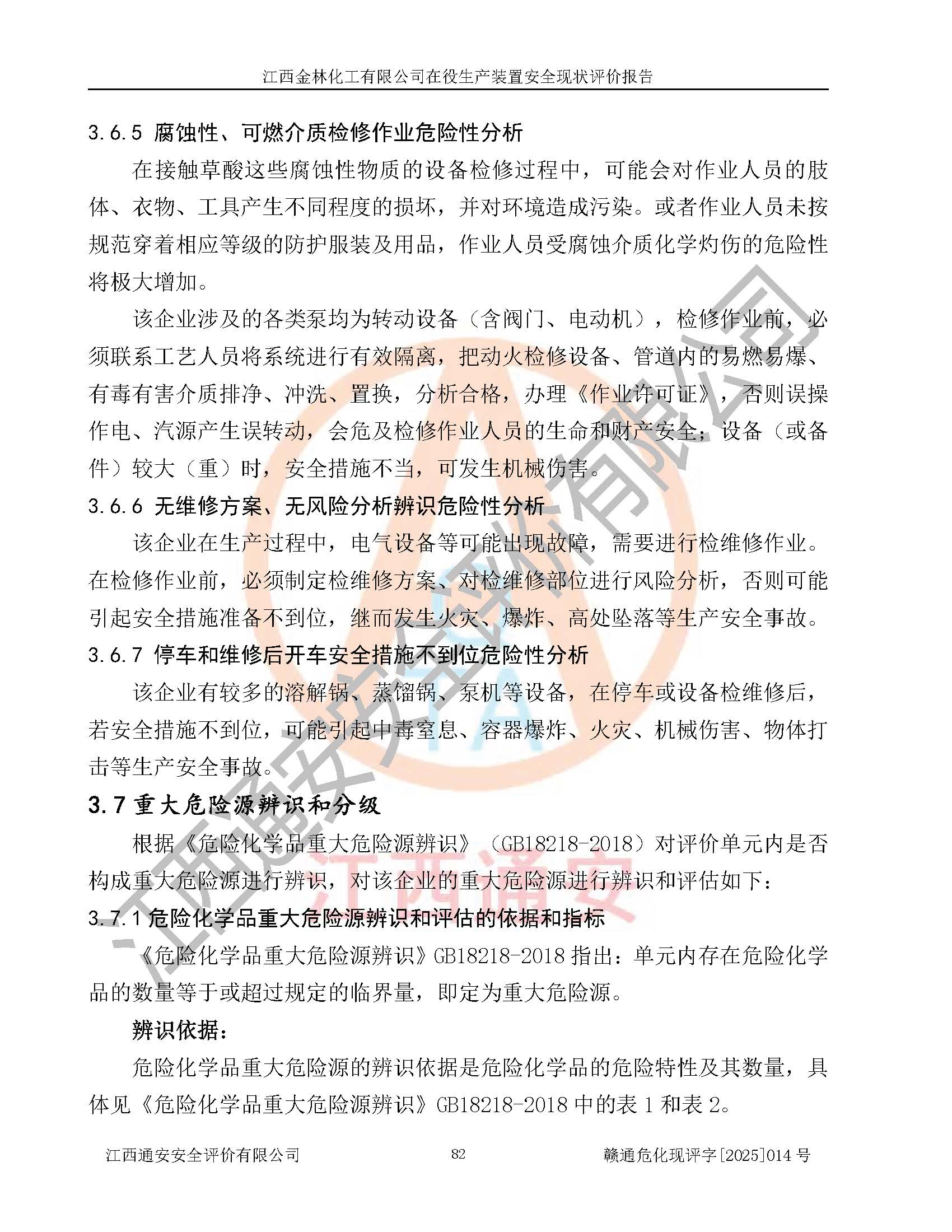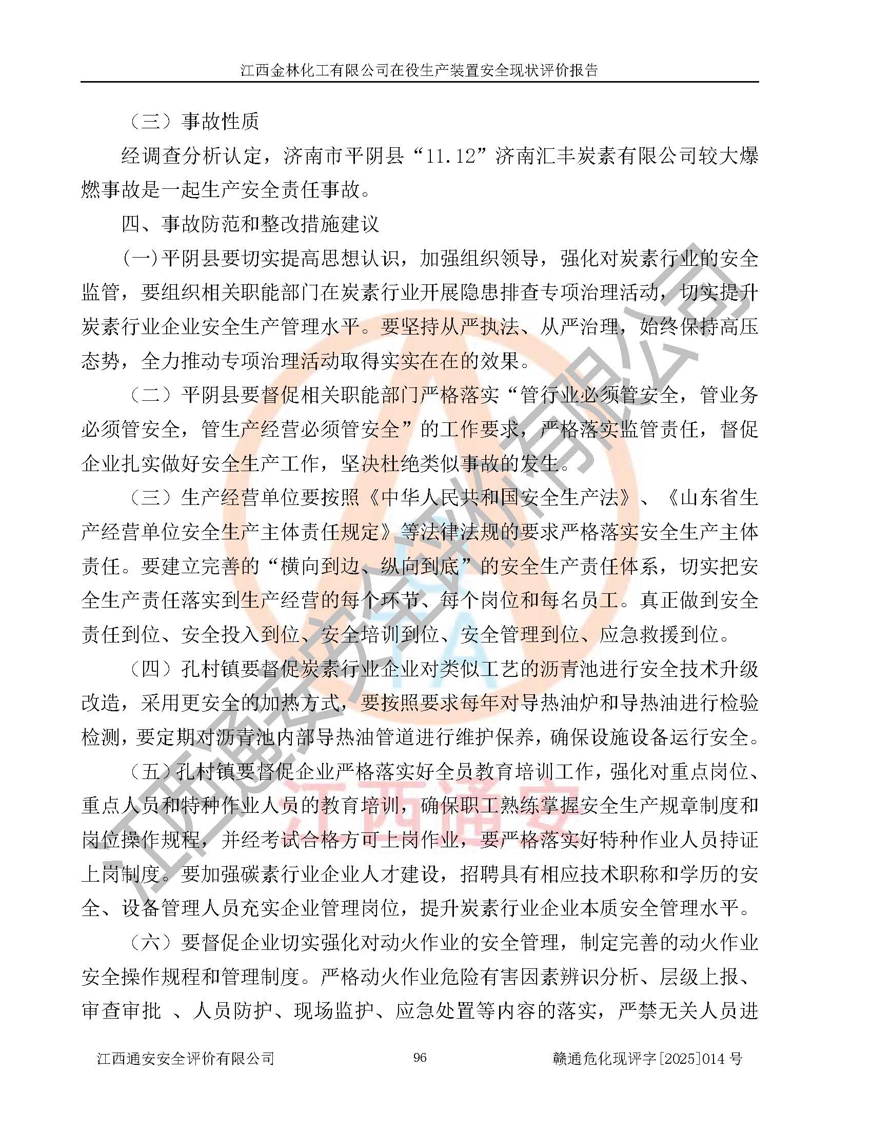 評價報告名稱 | 江西金林化工有限公司在役生產(chǎn)裝置安全現(xiàn)狀評價報告 | |||