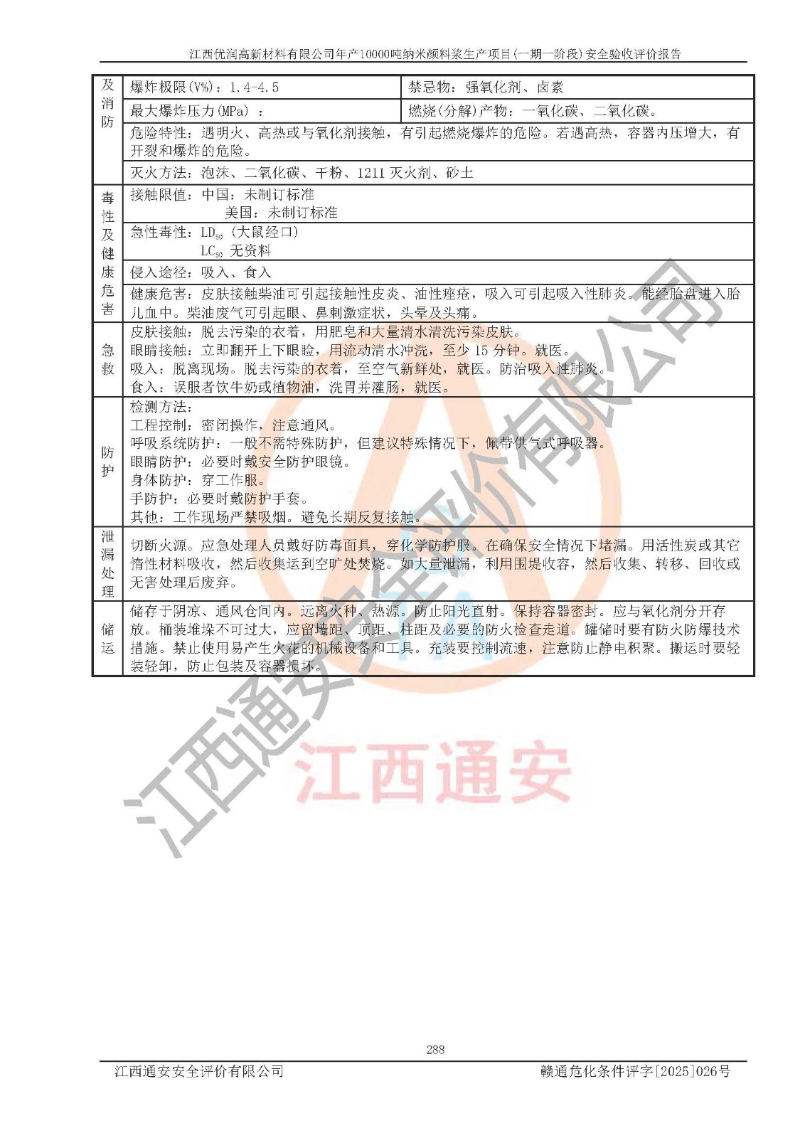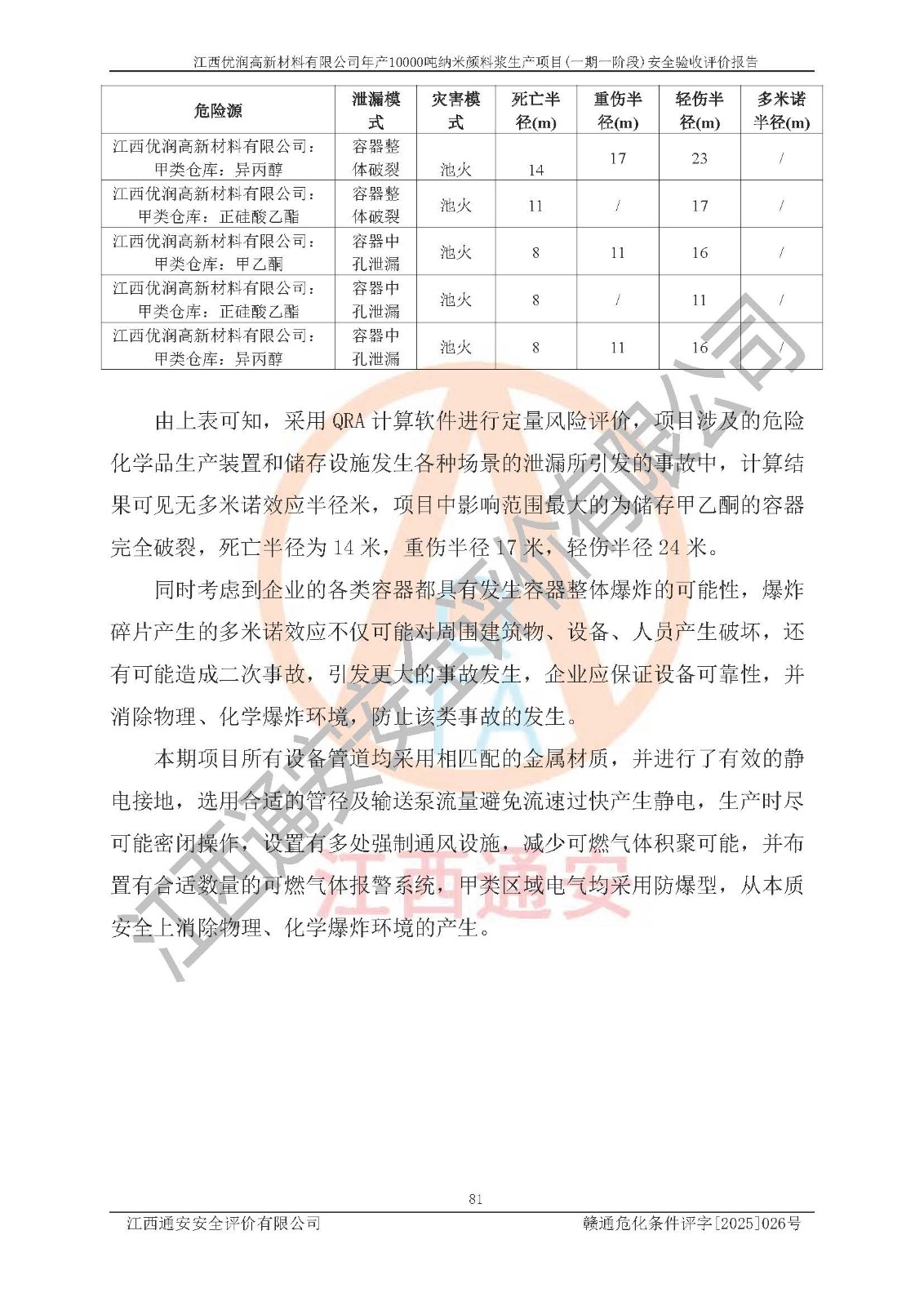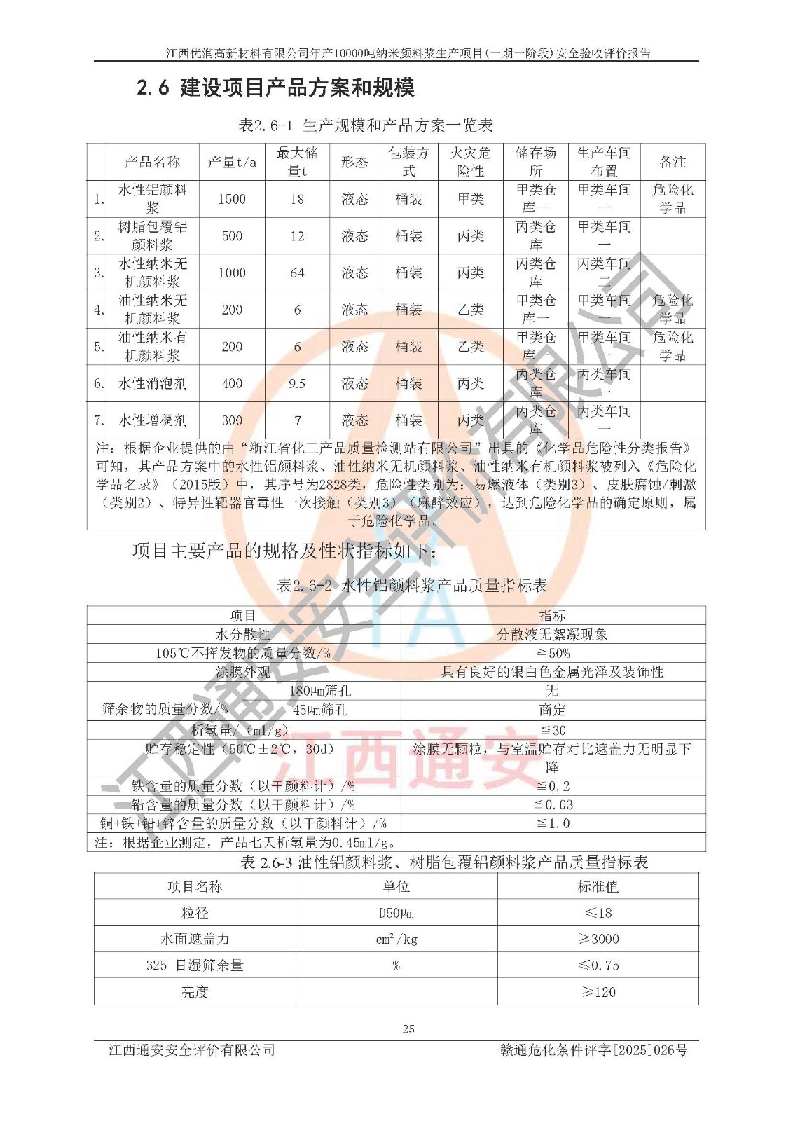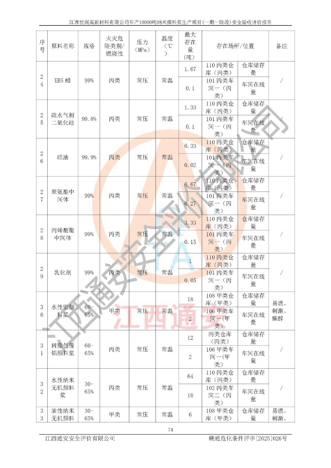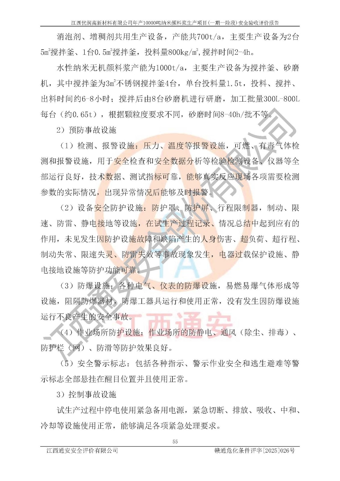評(píng)價(jià)報(bào)告名稱(chēng) | 江西優(yōu)潤(rùn)高新材料有限公司年產(chǎn)10000噸納米顏料漿生產(chǎn)項(xiàng)目(一期一階段)安全驗(yàn)收評(píng)價(jià)報(bào)告 | |||