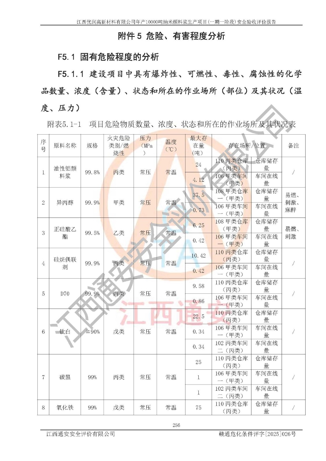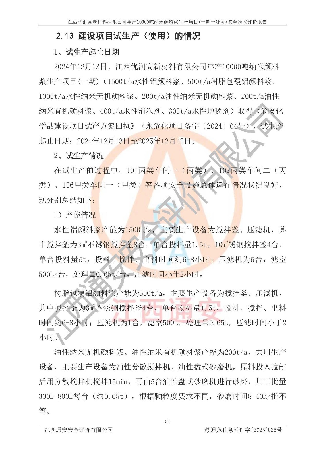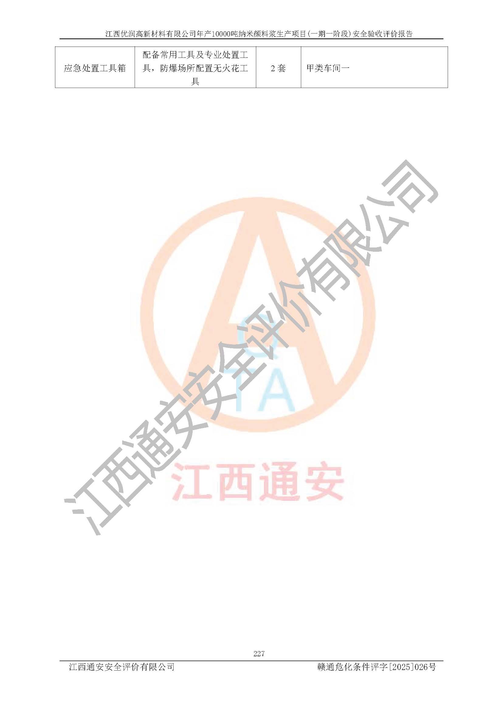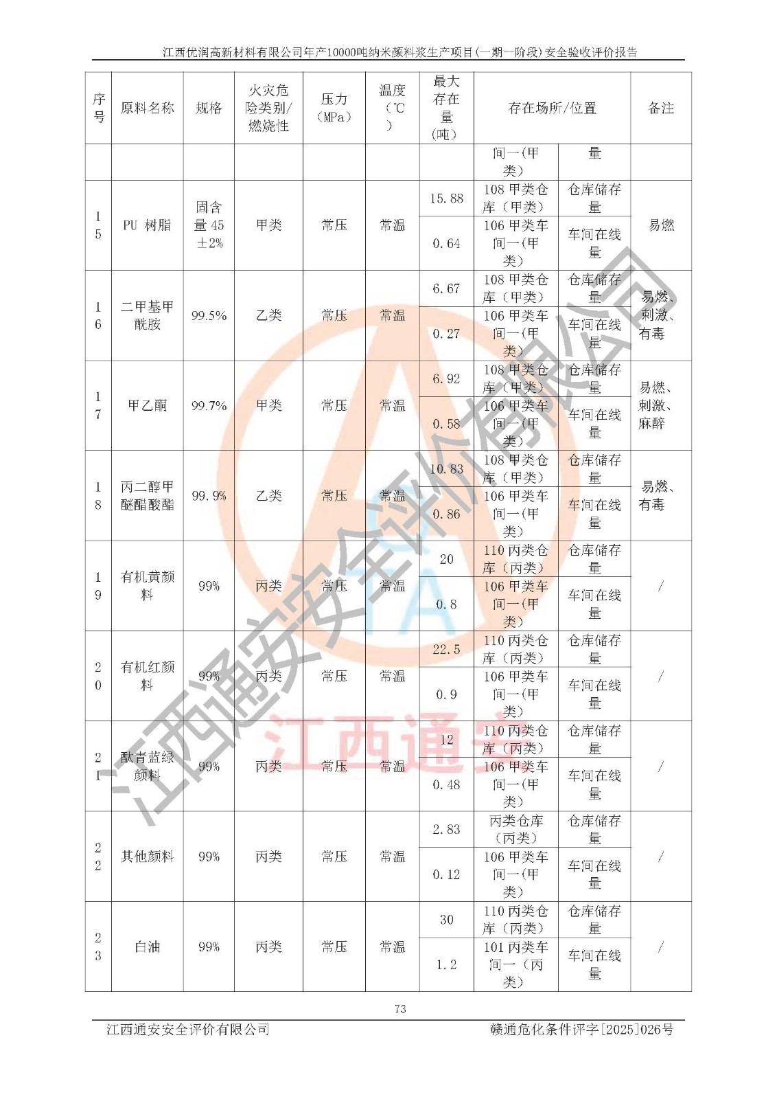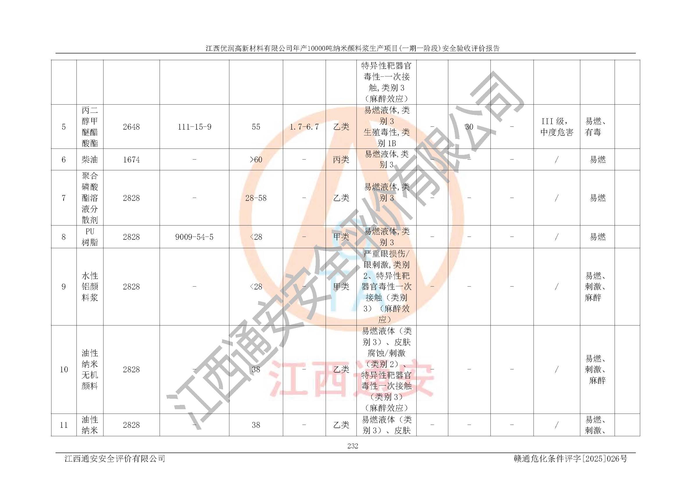 評(píng)價(jià)報(bào)告名稱(chēng) | 江西優(yōu)潤(rùn)高新材料有限公司年產(chǎn)10000噸納米顏料漿生產(chǎn)項(xiàng)目(一期一階段)安全驗(yàn)收評(píng)價(jià)報(bào)告 | |||