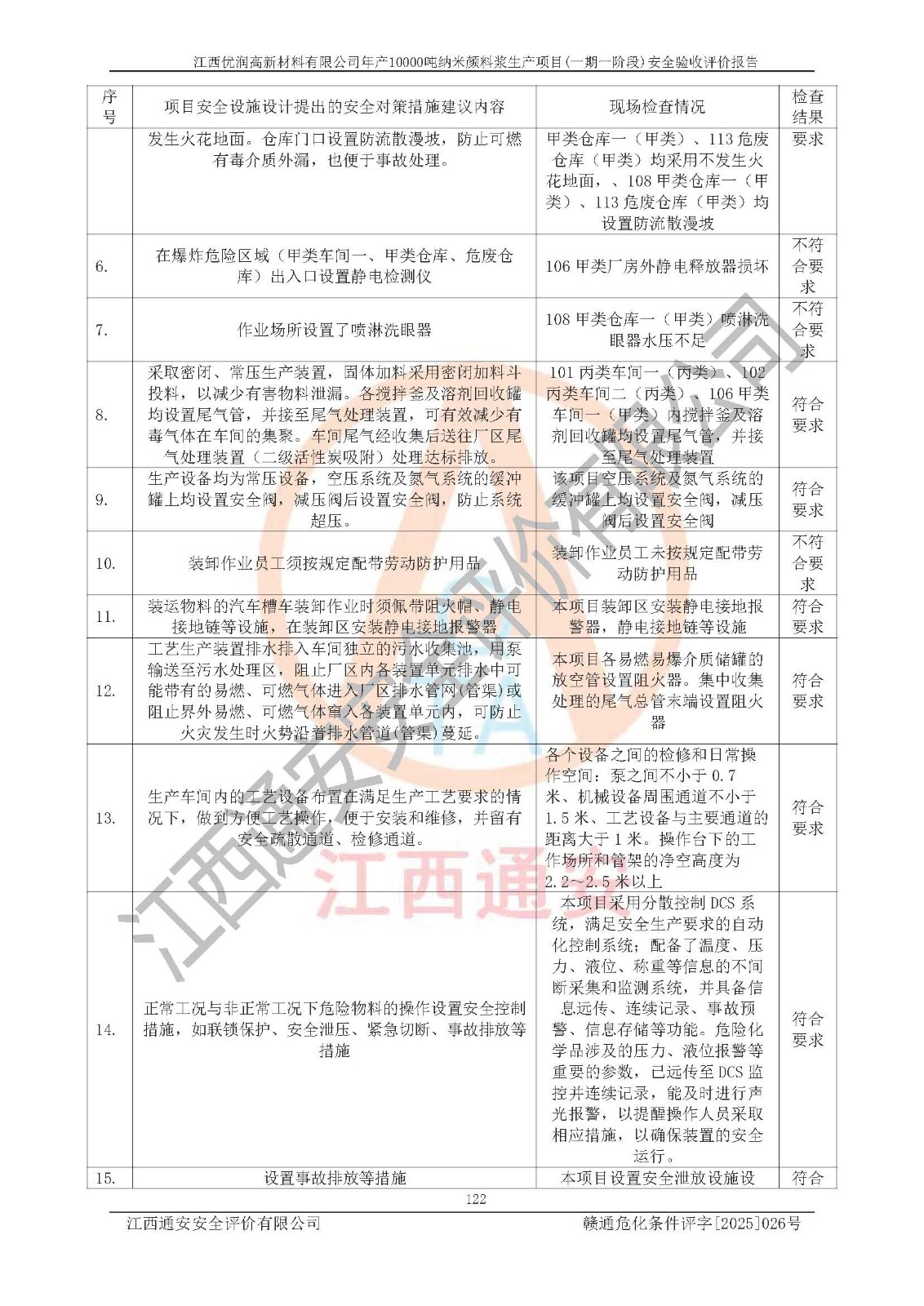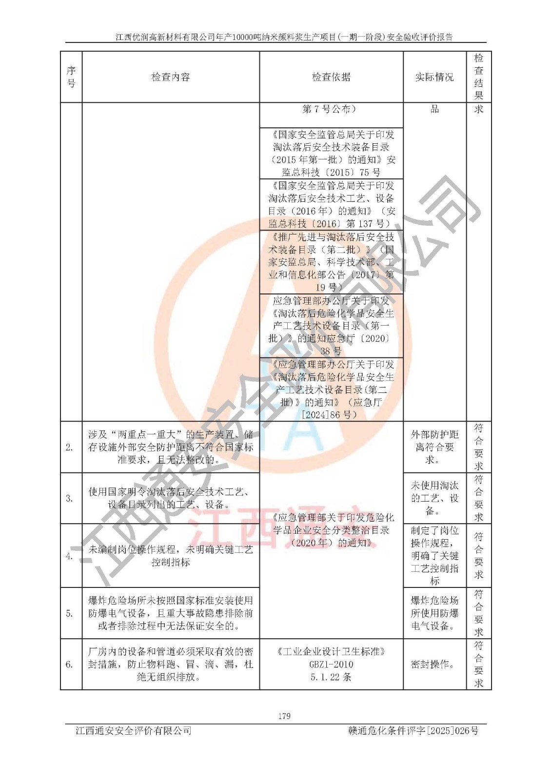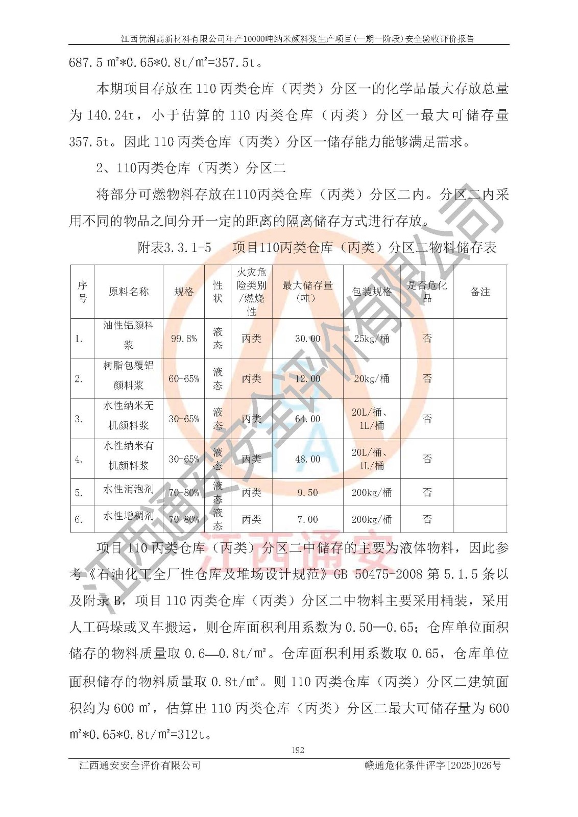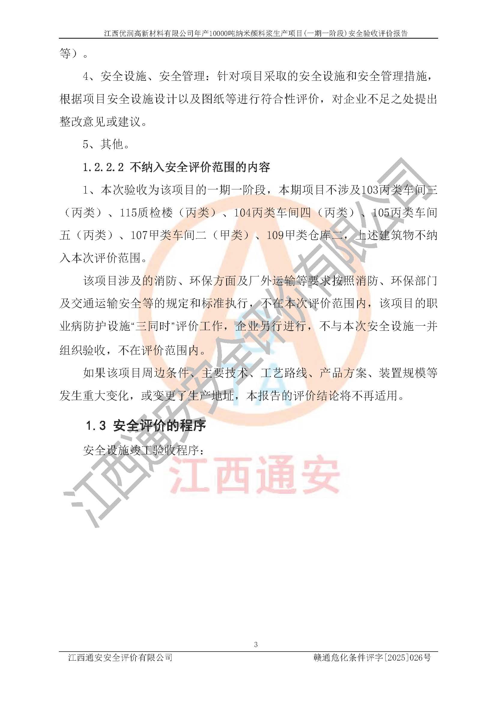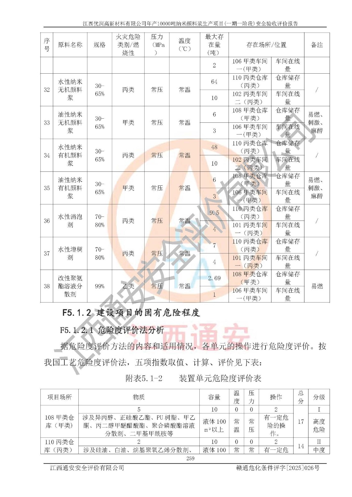 評(píng)價(jià)報(bào)告名稱(chēng) | 江西優(yōu)潤(rùn)高新材料有限公司年產(chǎn)10000噸納米顏料漿生產(chǎn)項(xiàng)目(一期一階段)安全驗(yàn)收評(píng)價(jià)報(bào)告 | |||