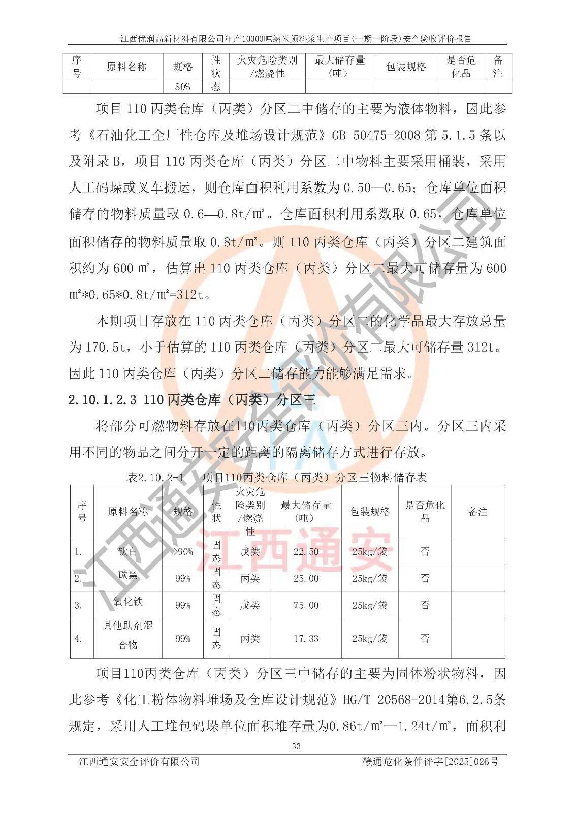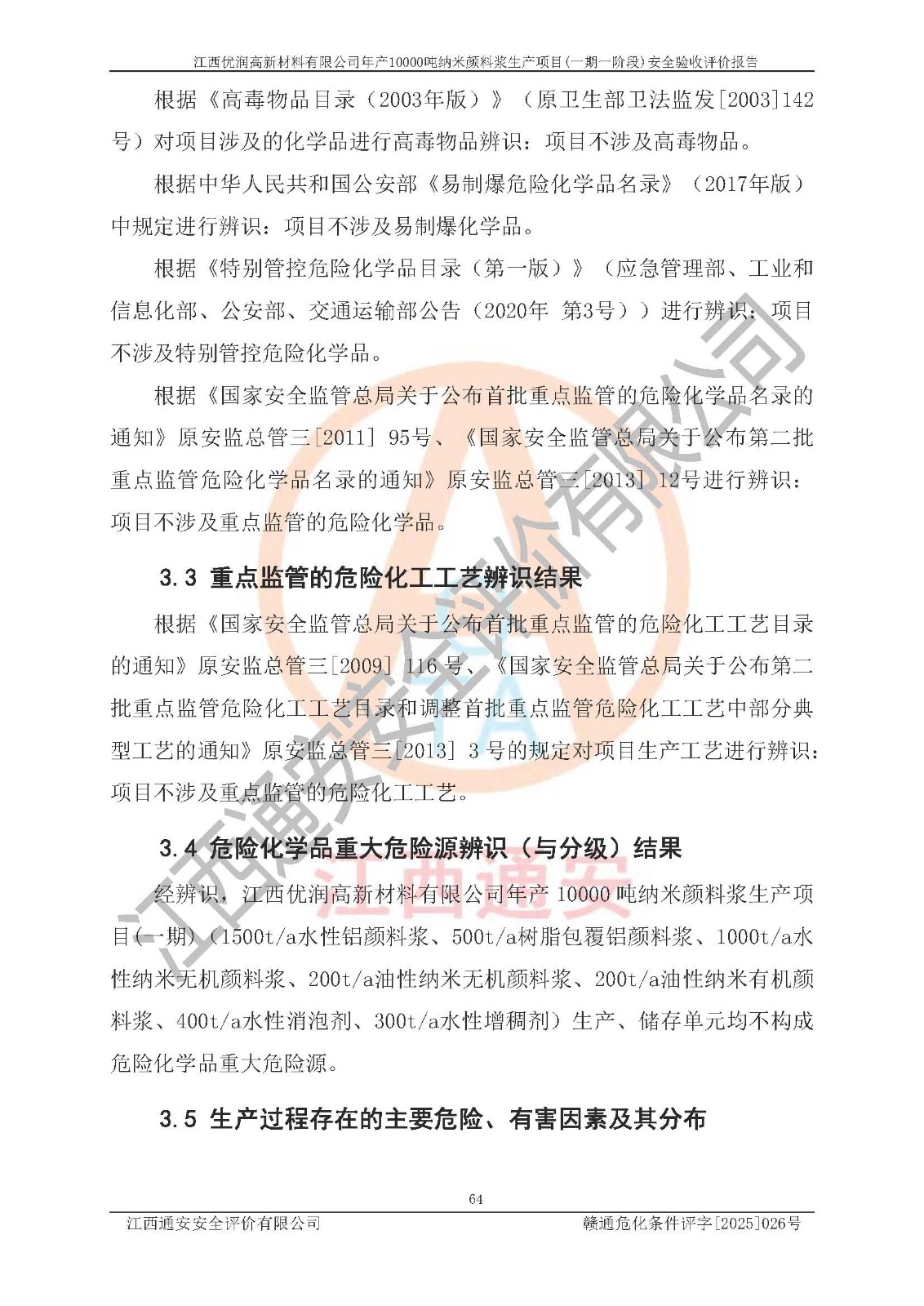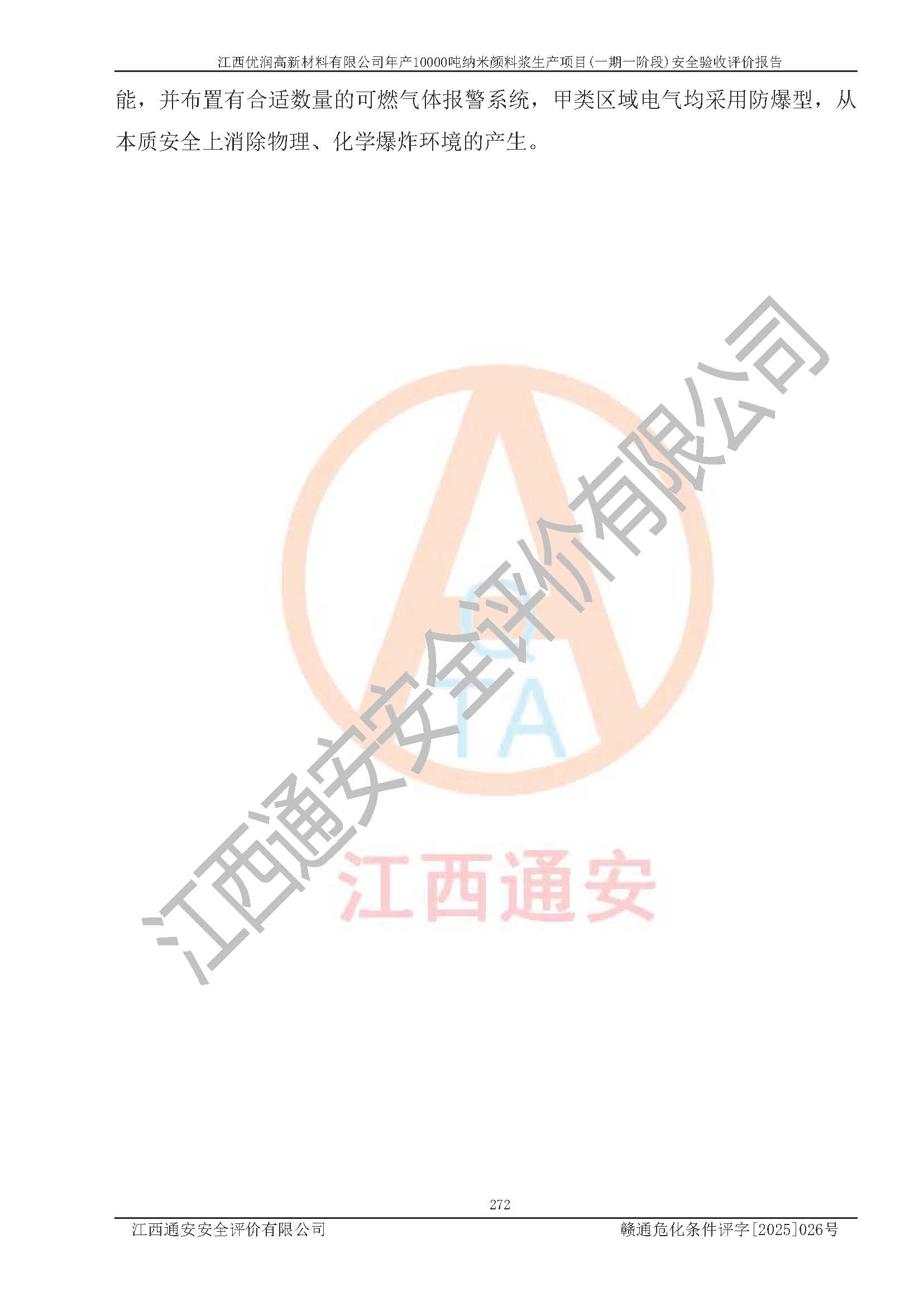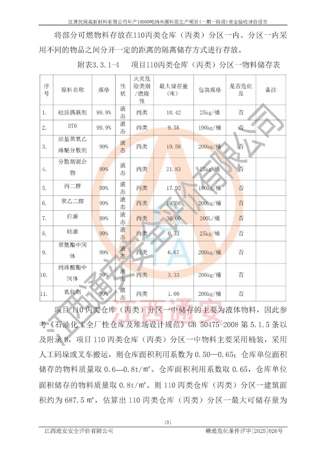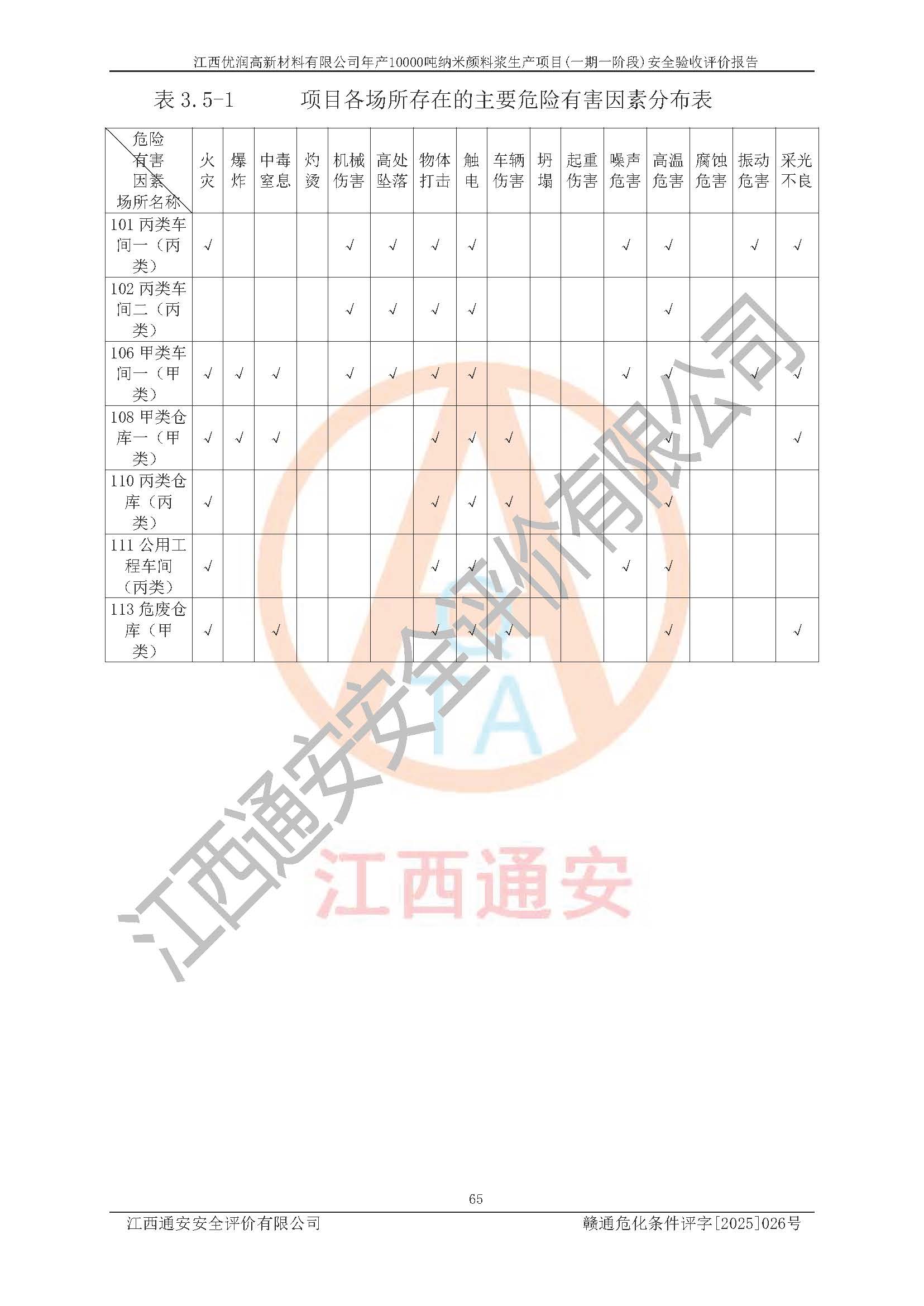 評(píng)價(jià)報(bào)告名稱(chēng) | 江西優(yōu)潤(rùn)高新材料有限公司年產(chǎn)10000噸納米顏料漿生產(chǎn)項(xiàng)目(一期一階段)安全驗(yàn)收評(píng)價(jià)報(bào)告 | |||