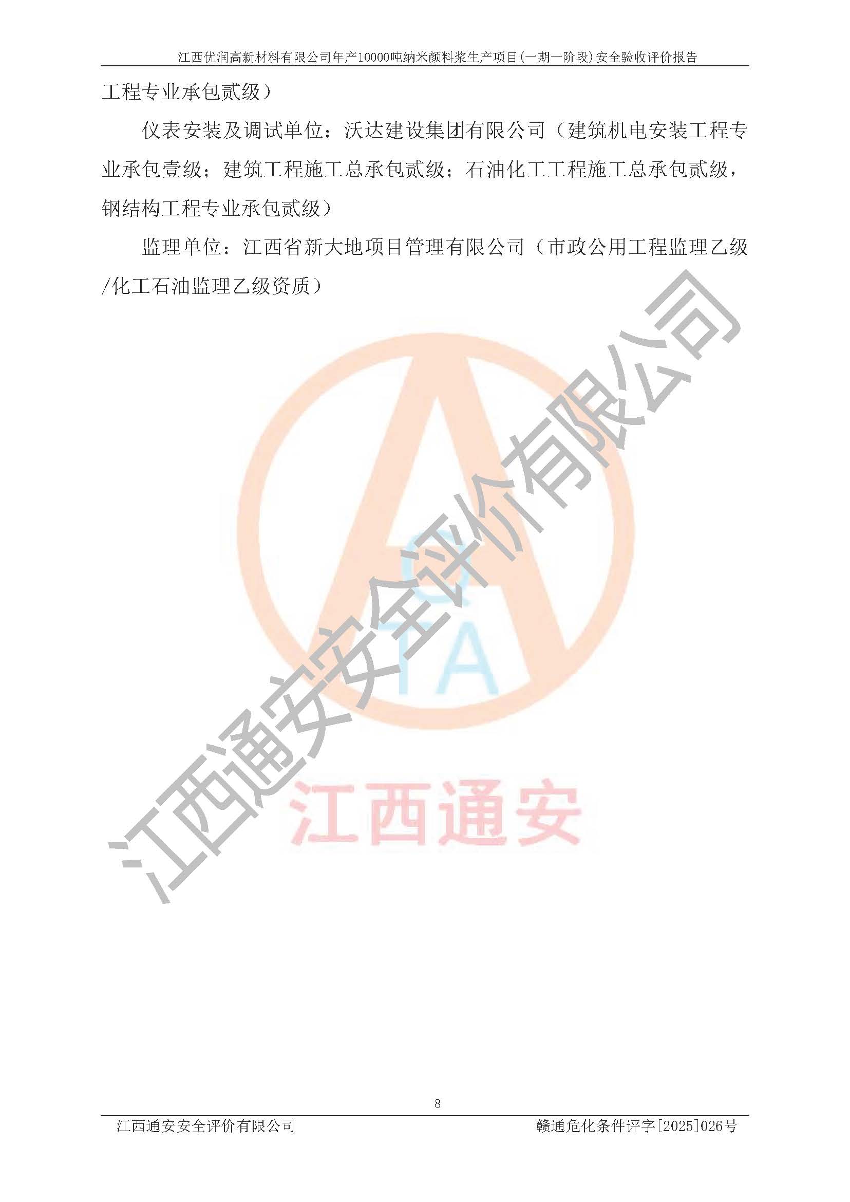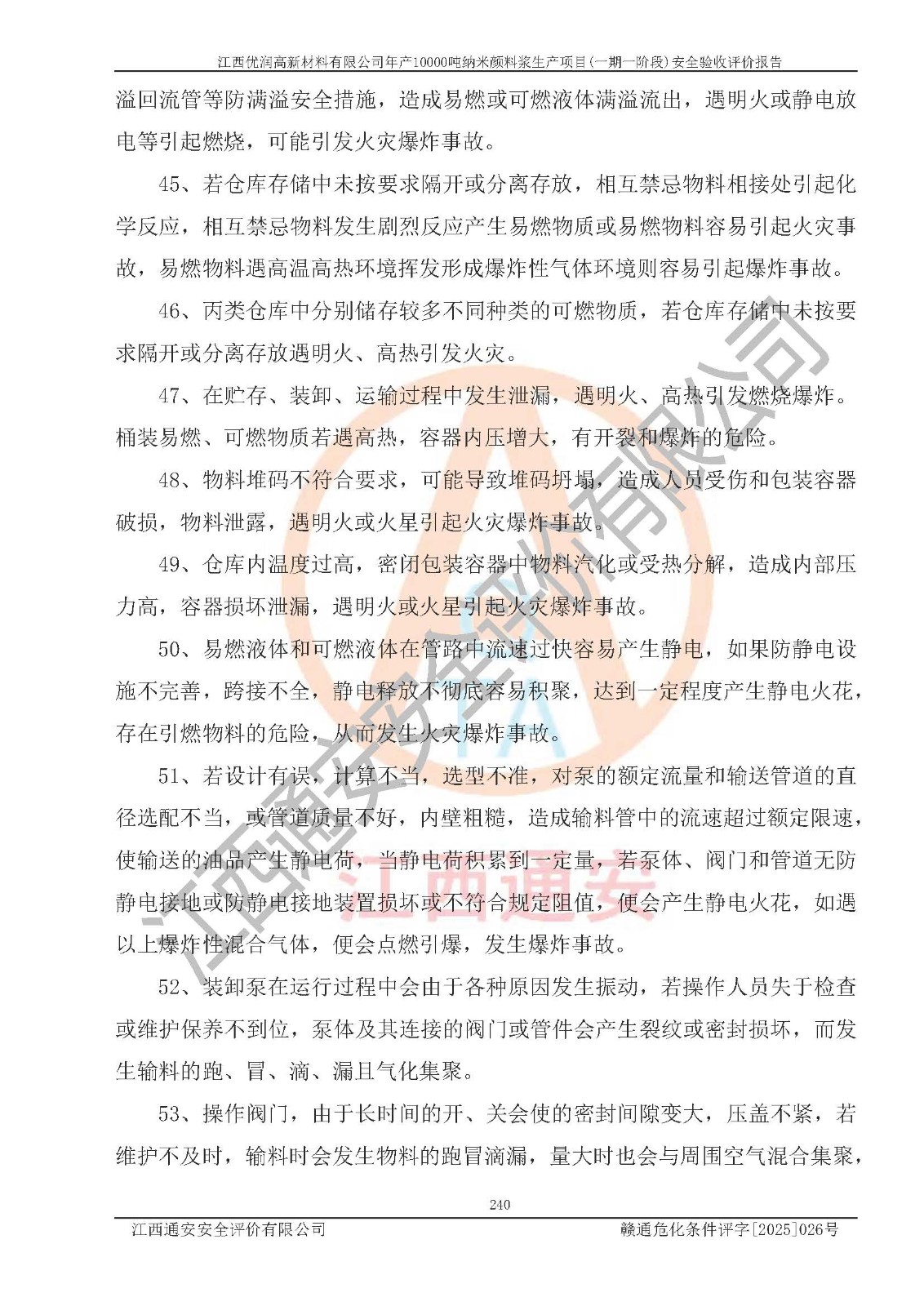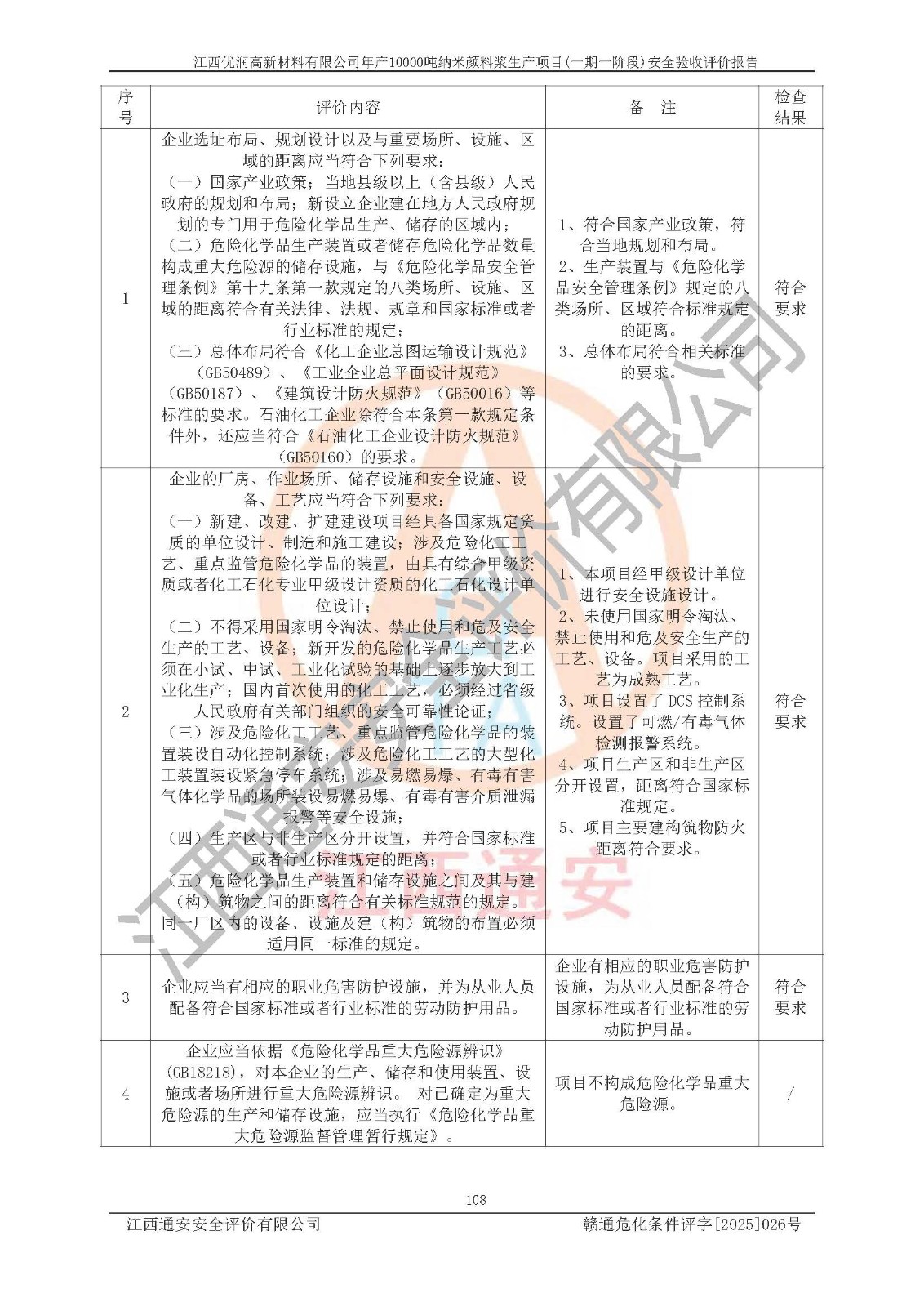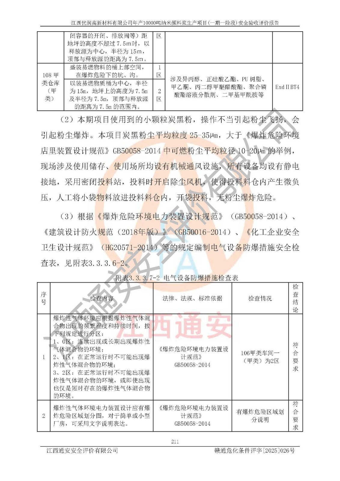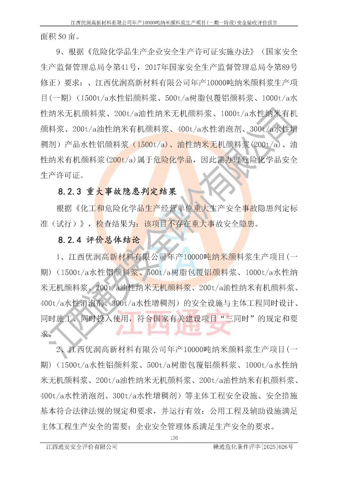 評(píng)價(jià)報(bào)告名稱(chēng) | 江西優(yōu)潤(rùn)高新材料有限公司年產(chǎn)10000噸納米顏料漿生產(chǎn)項(xiàng)目(一期一階段)安全驗(yàn)收評(píng)價(jià)報(bào)告 | |||