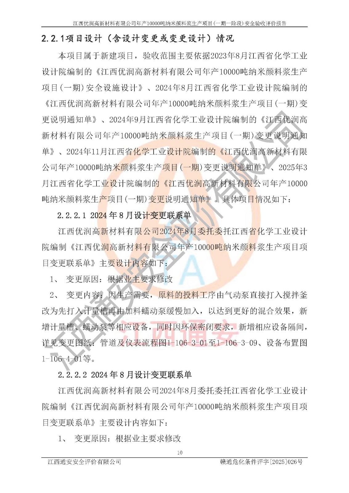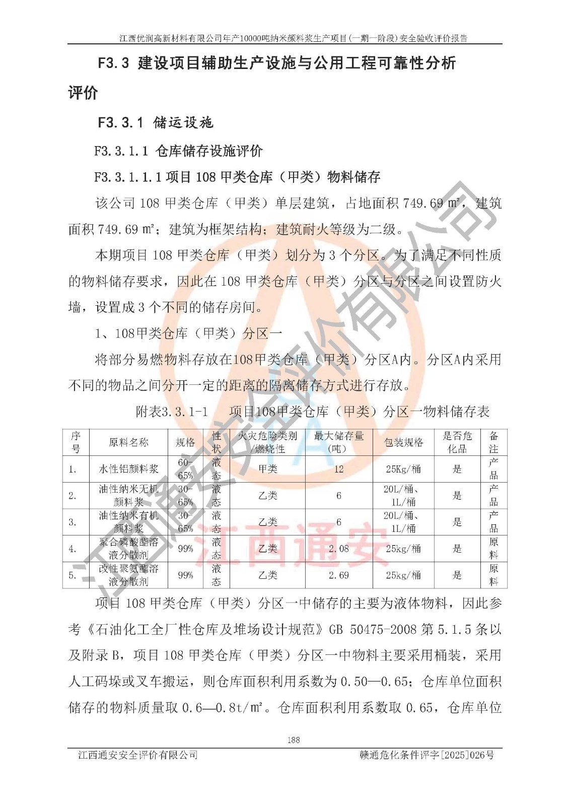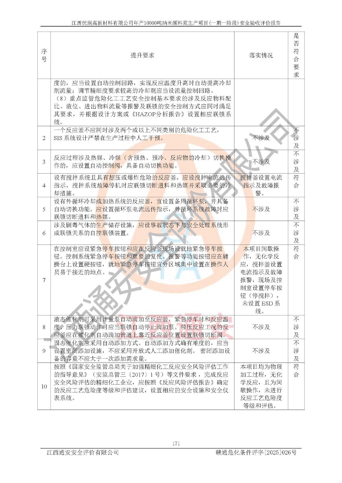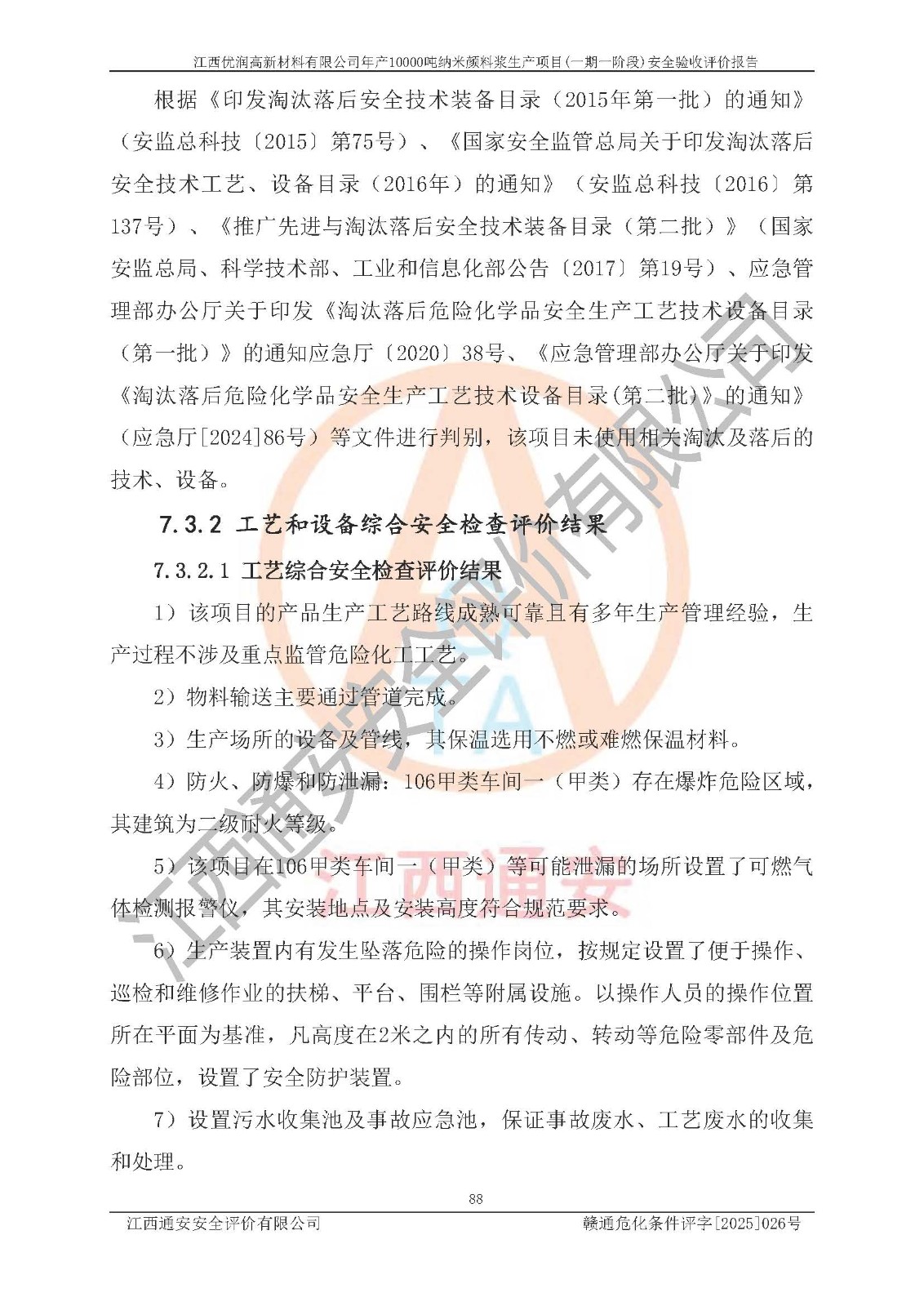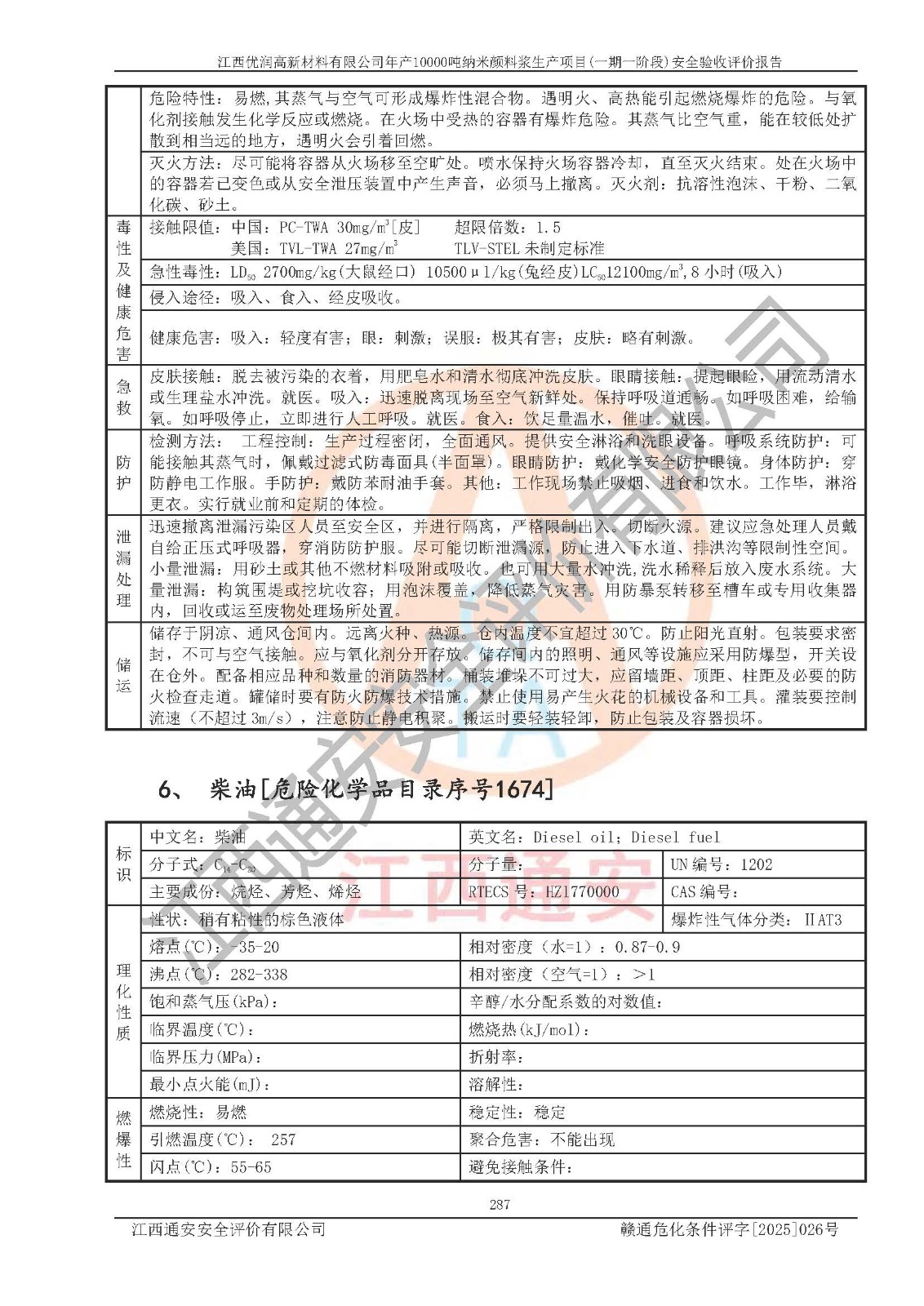 評(píng)價(jià)報(bào)告名稱(chēng) | 江西優(yōu)潤(rùn)高新材料有限公司年產(chǎn)10000噸納米顏料漿生產(chǎn)項(xiàng)目(一期一階段)安全驗(yàn)收評(píng)價(jià)報(bào)告 | |||