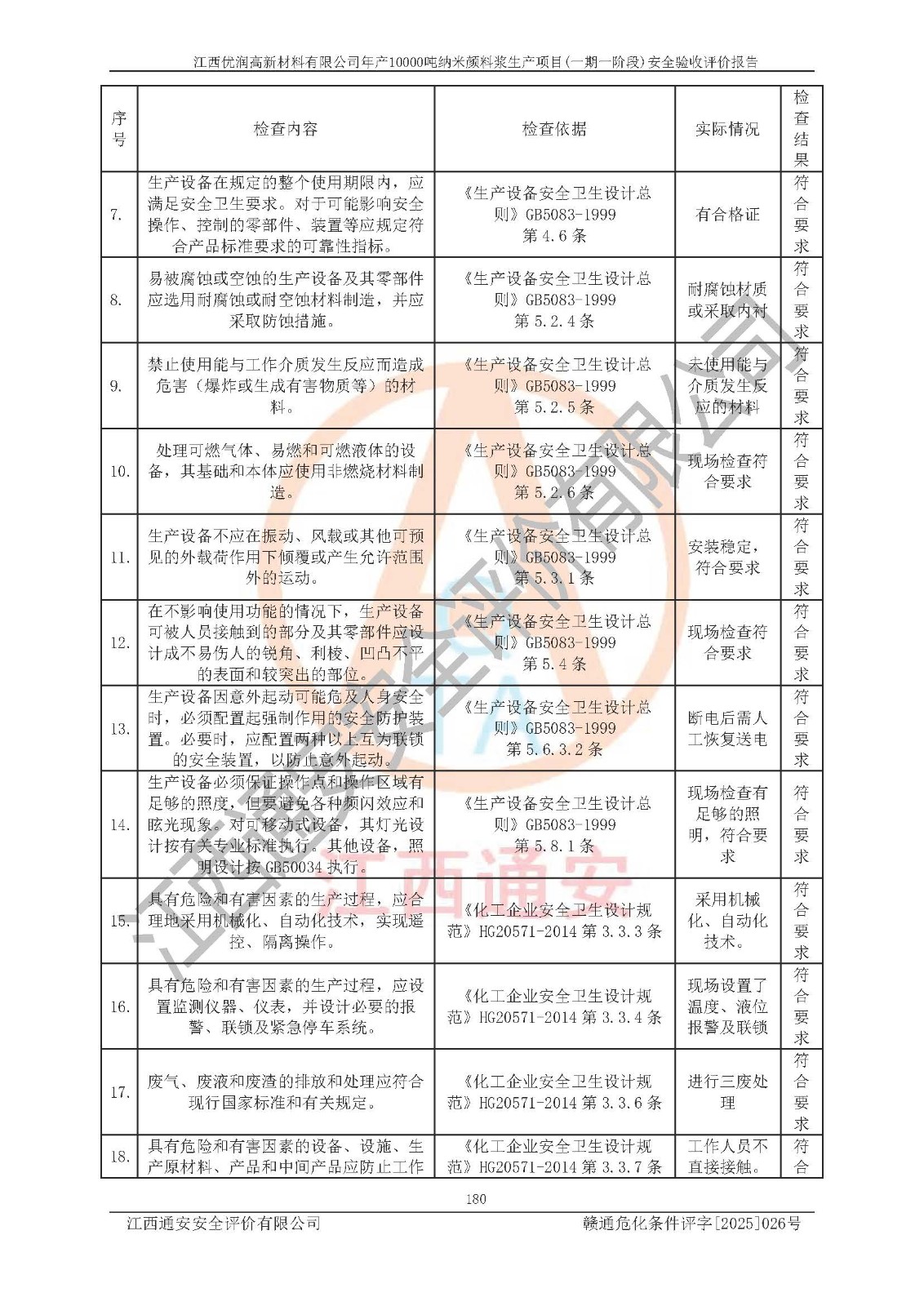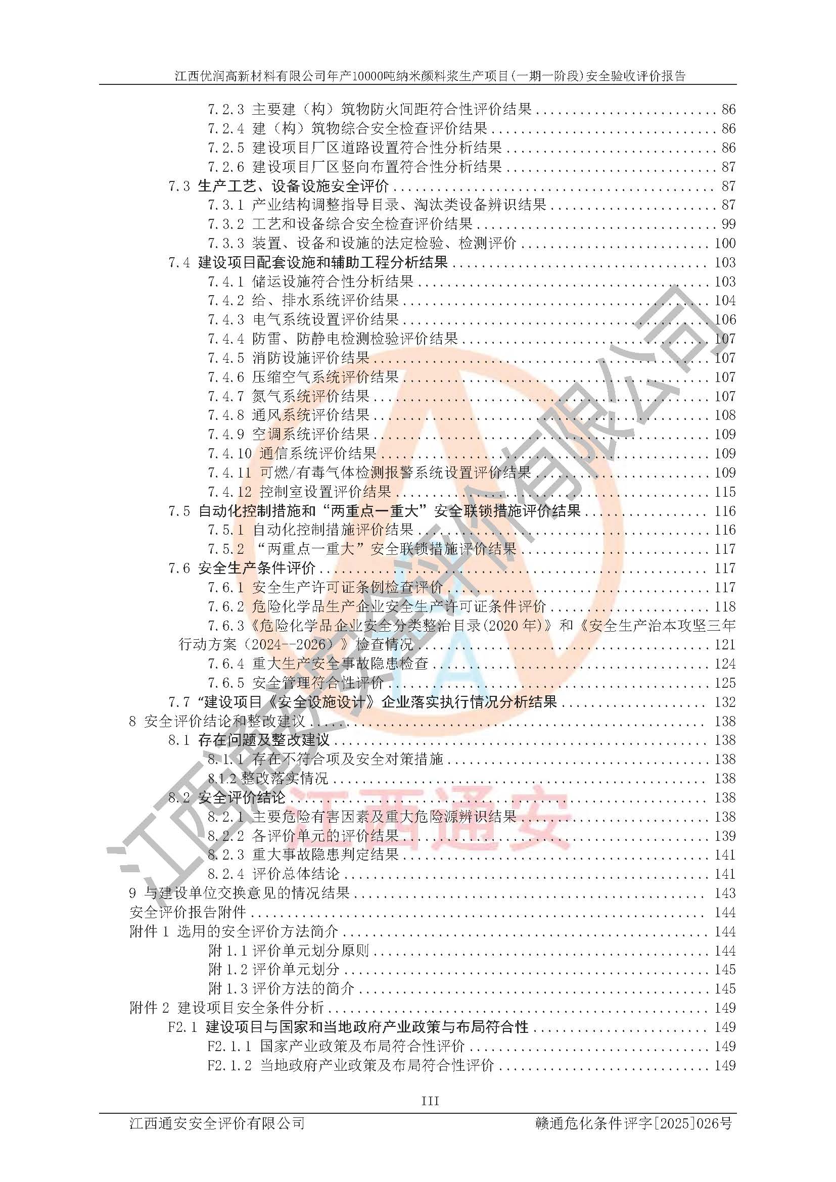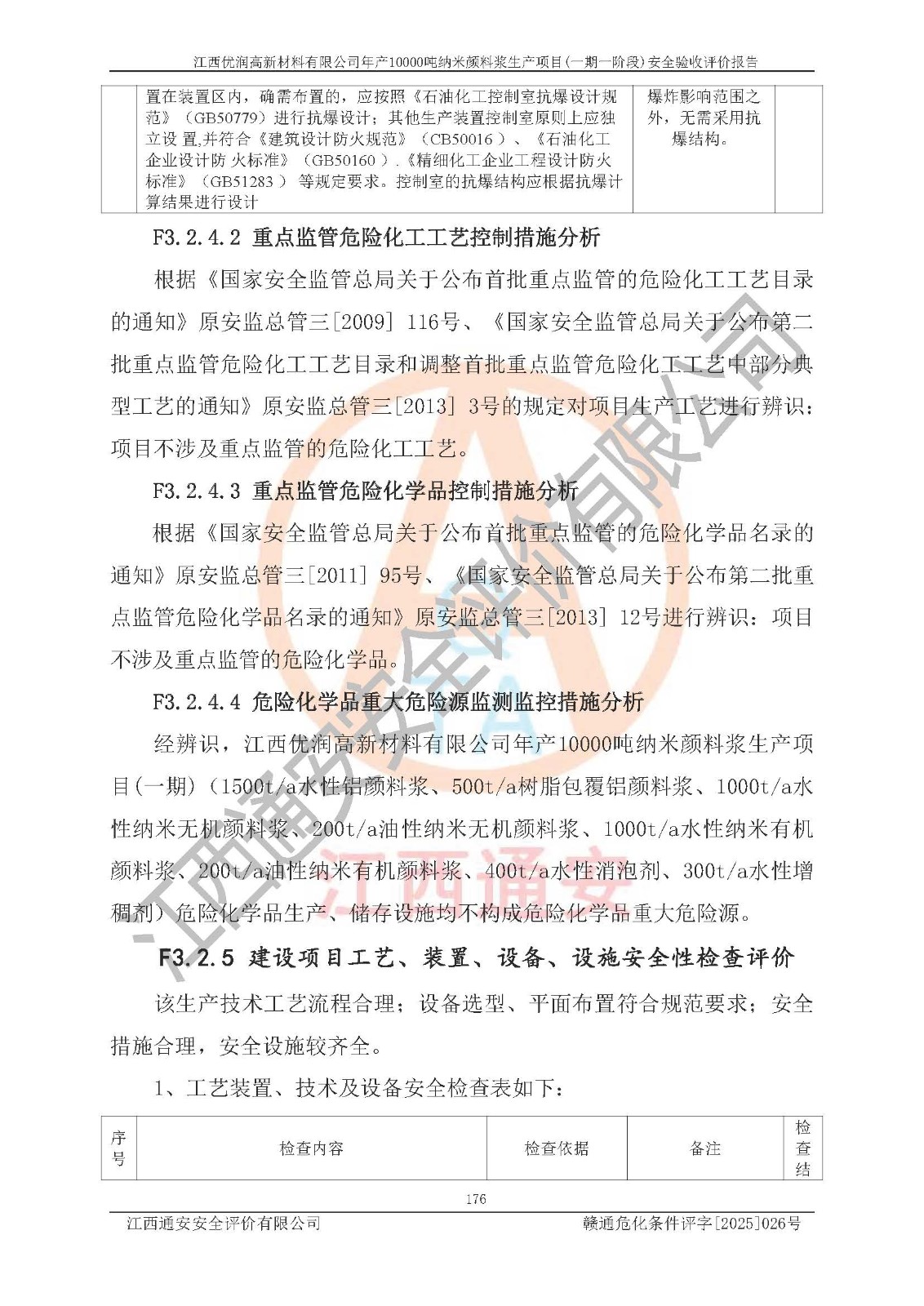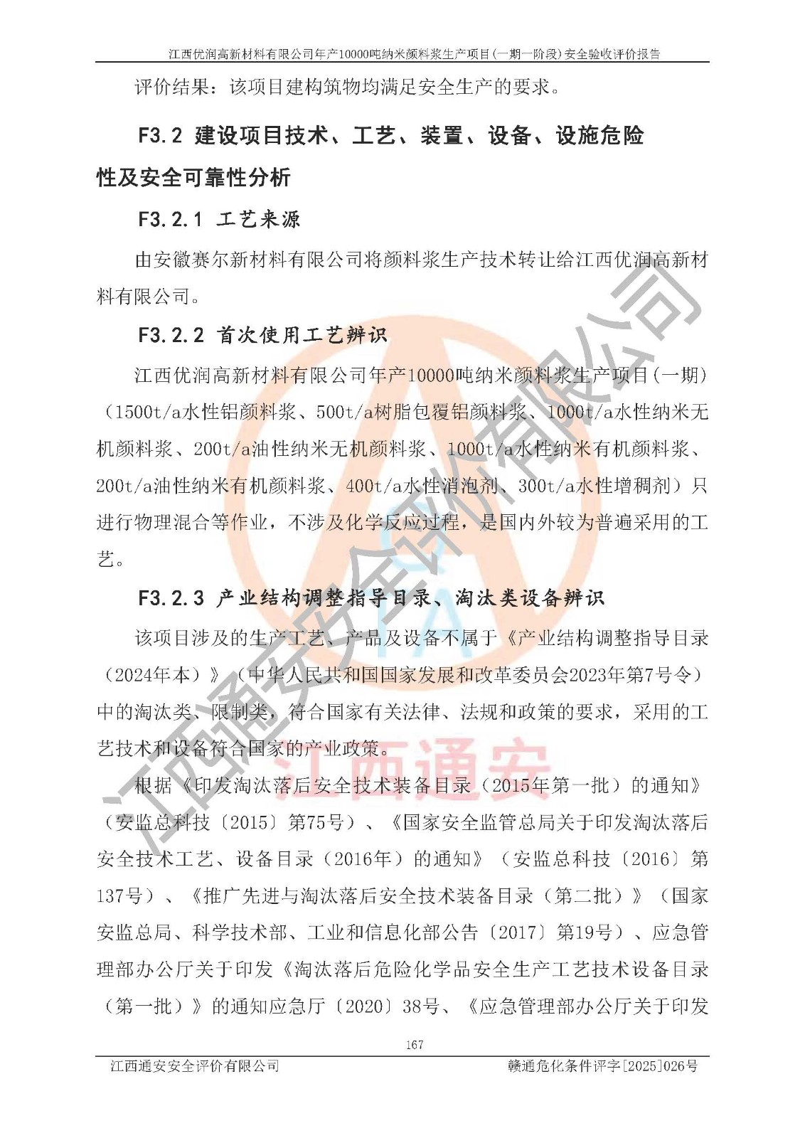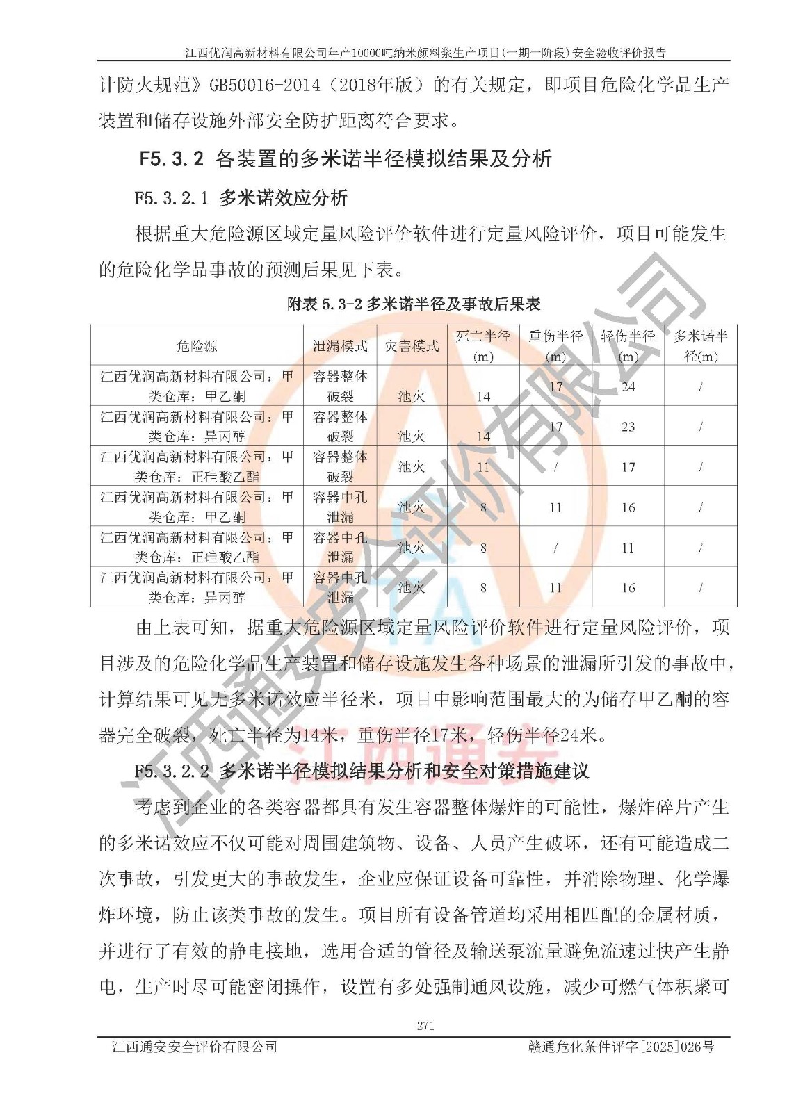 評(píng)價(jià)報(bào)告名稱(chēng) | 江西優(yōu)潤(rùn)高新材料有限公司年產(chǎn)10000噸納米顏料漿生產(chǎn)項(xiàng)目(一期一階段)安全驗(yàn)收評(píng)價(jià)報(bào)告 | |||