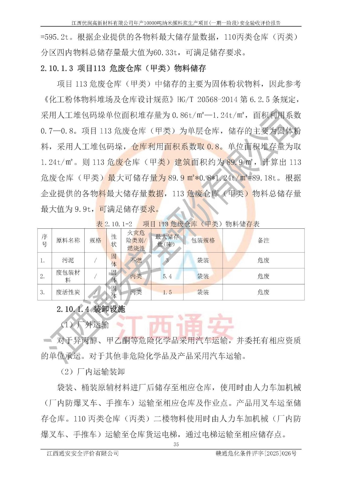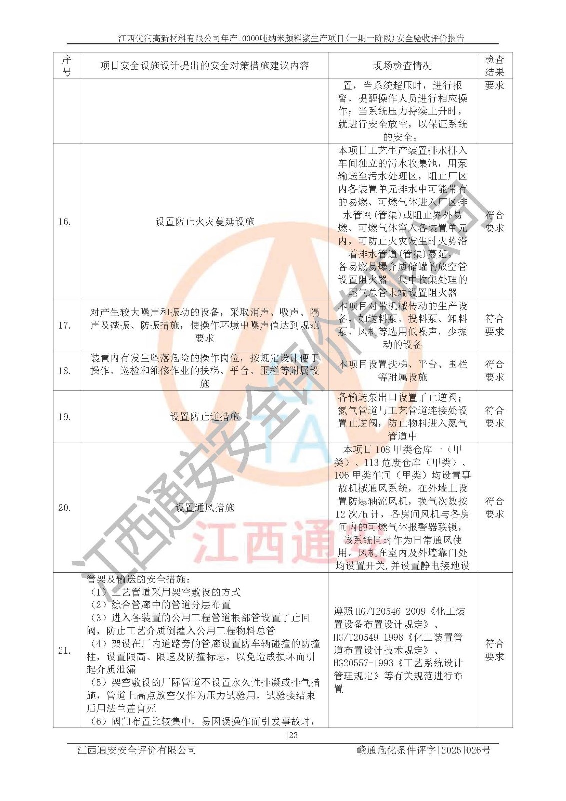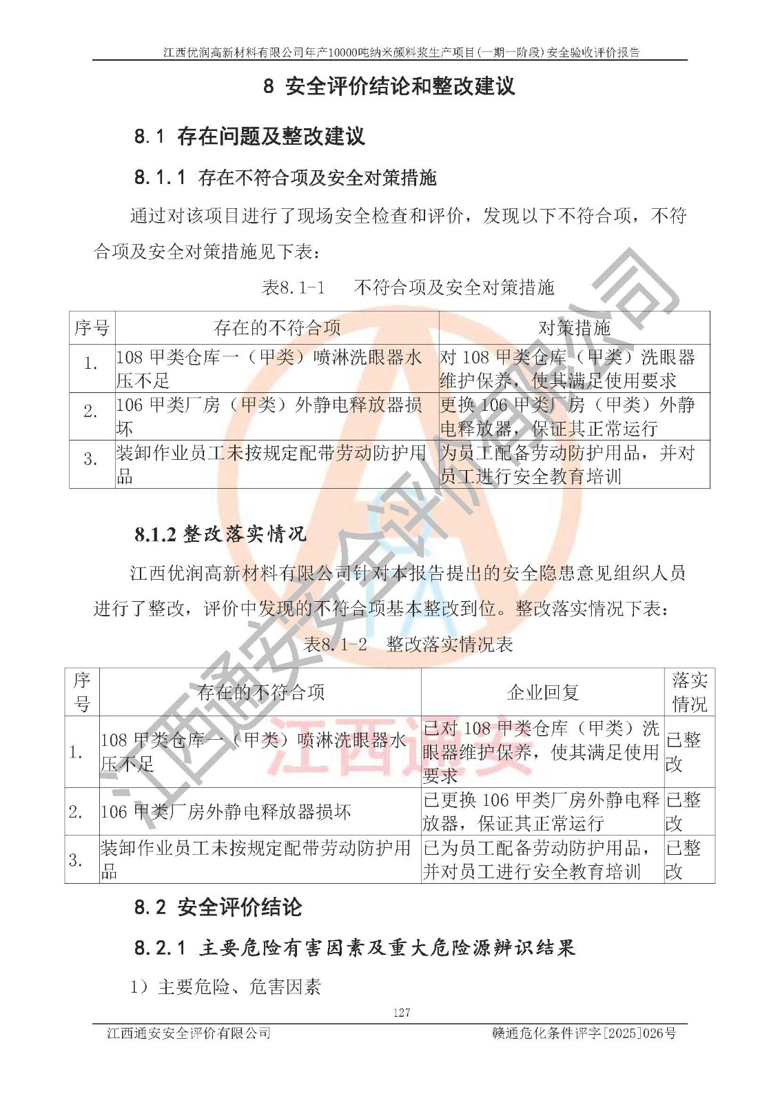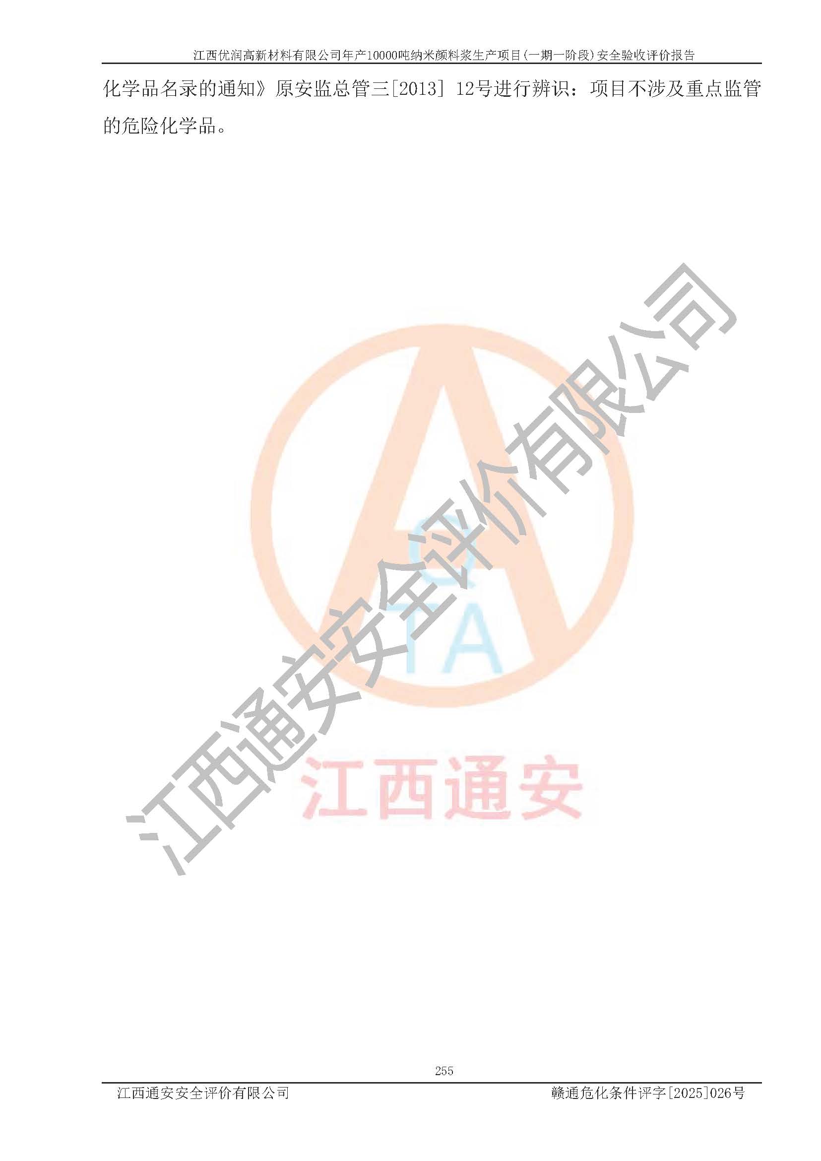 評(píng)價(jià)報(bào)告名稱(chēng) | 江西優(yōu)潤(rùn)高新材料有限公司年產(chǎn)10000噸納米顏料漿生產(chǎn)項(xiàng)目(一期一階段)安全驗(yàn)收評(píng)價(jià)報(bào)告 | |||