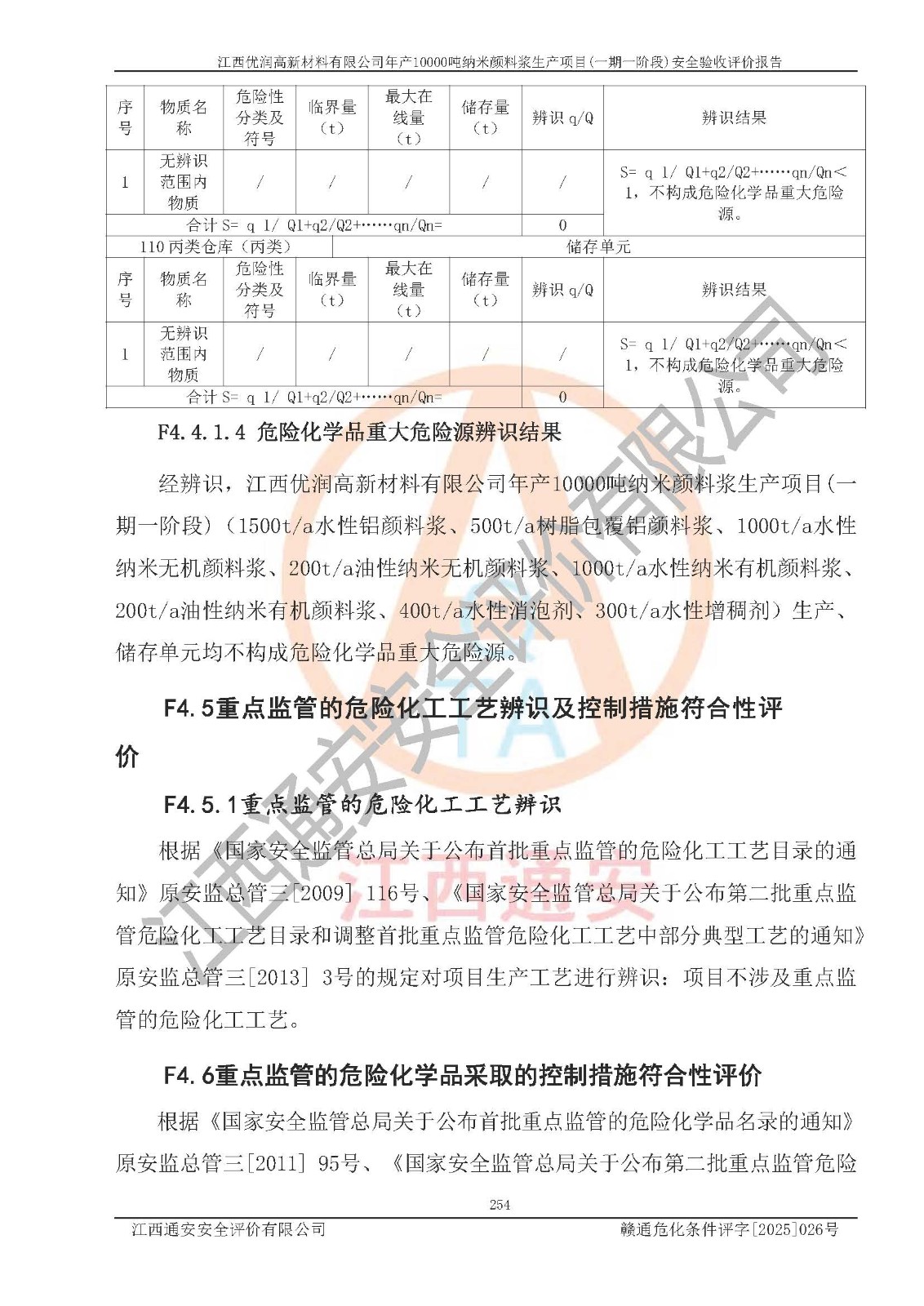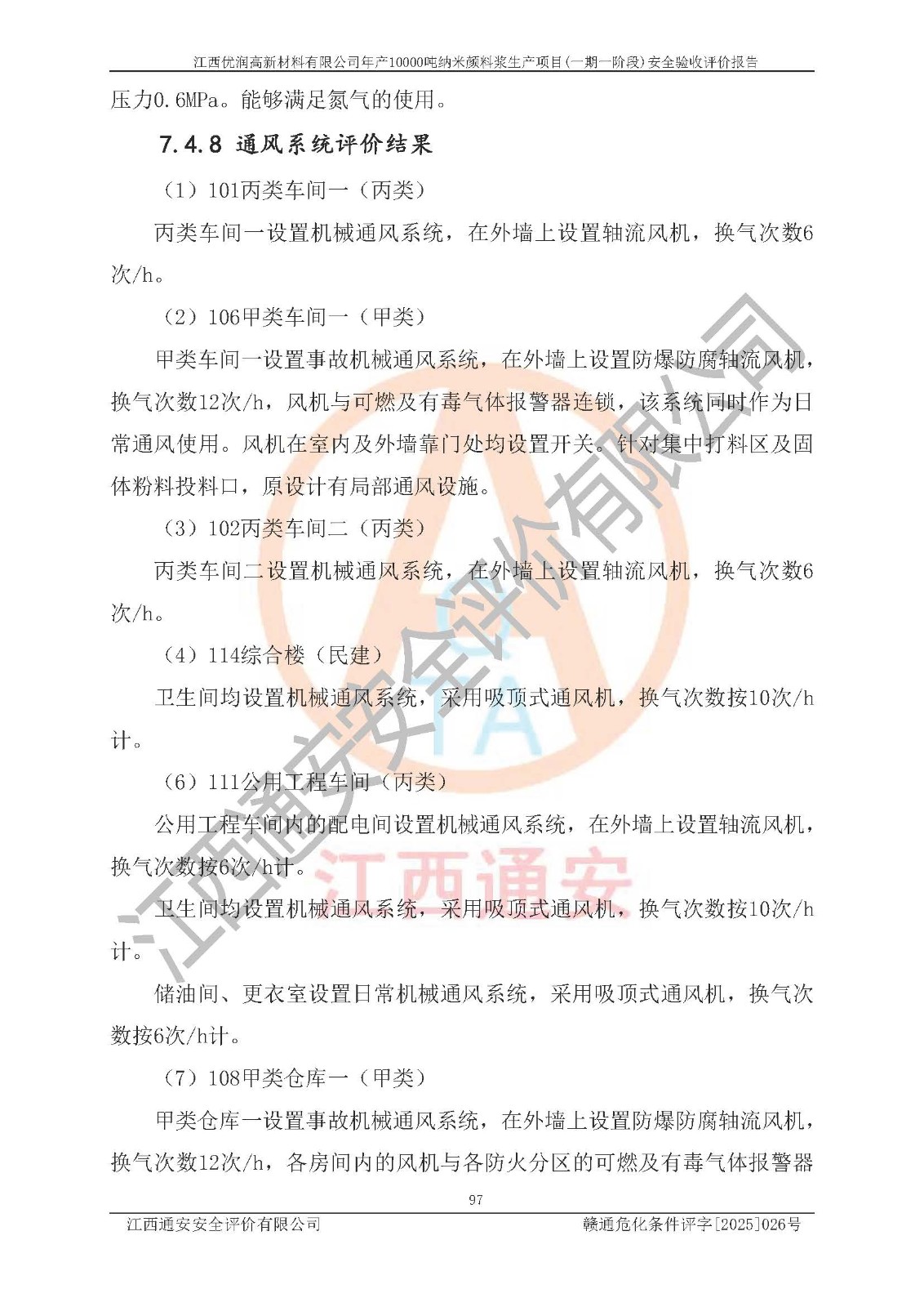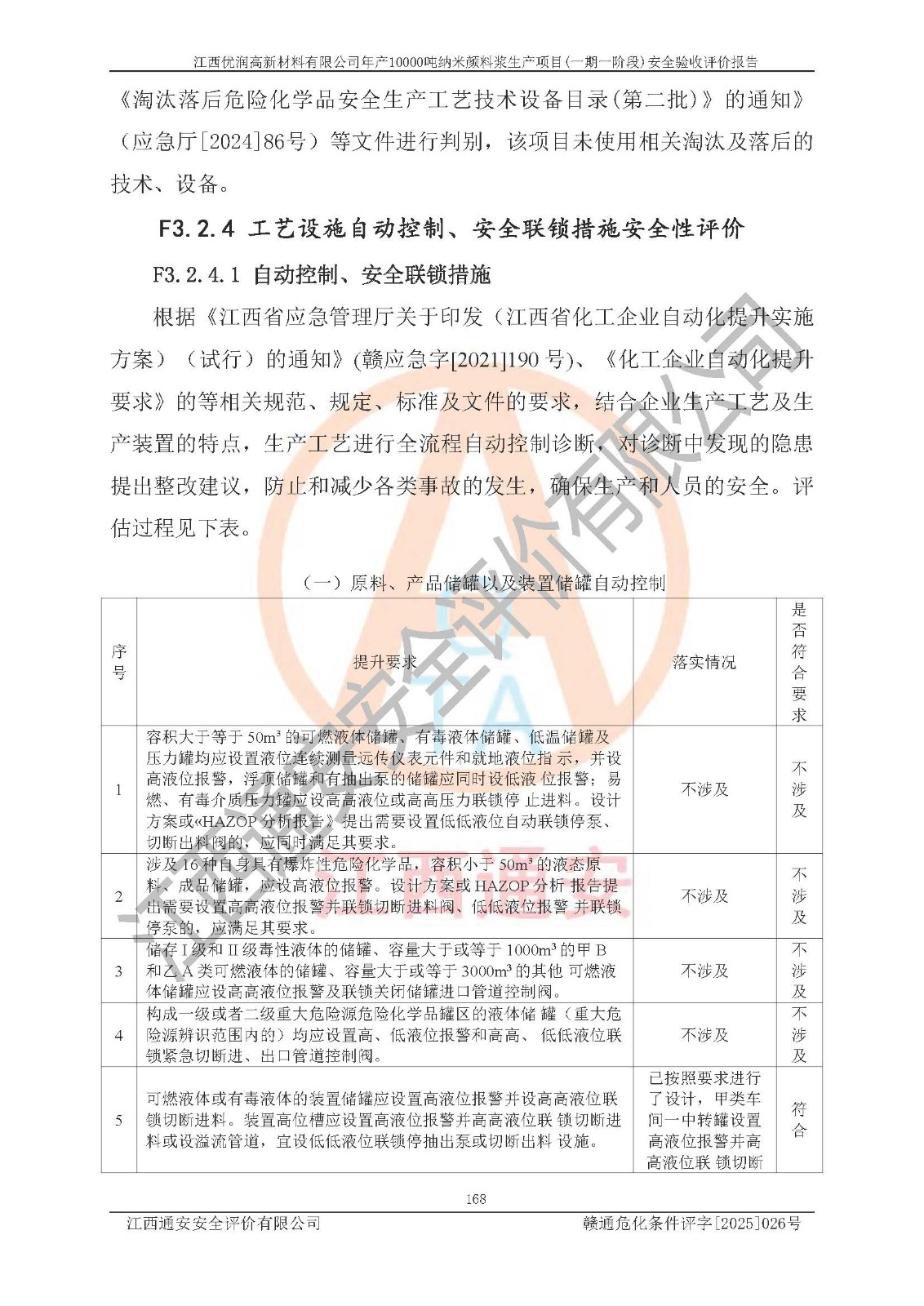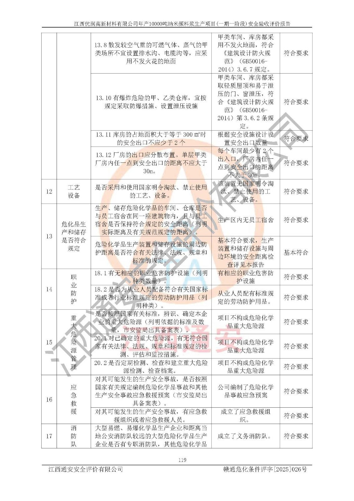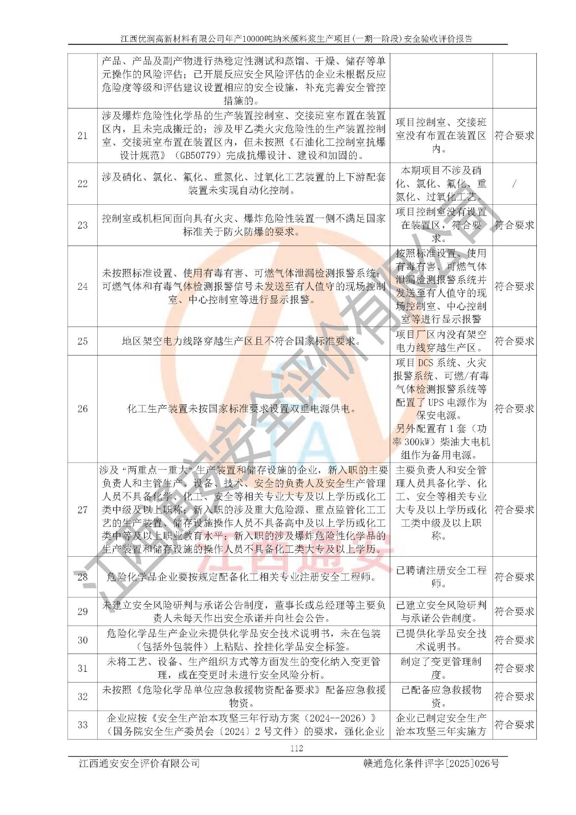 評(píng)價(jià)報(bào)告名稱(chēng) | 江西優(yōu)潤(rùn)高新材料有限公司年產(chǎn)10000噸納米顏料漿生產(chǎn)項(xiàng)目(一期一階段)安全驗(yàn)收評(píng)價(jià)報(bào)告 | |||