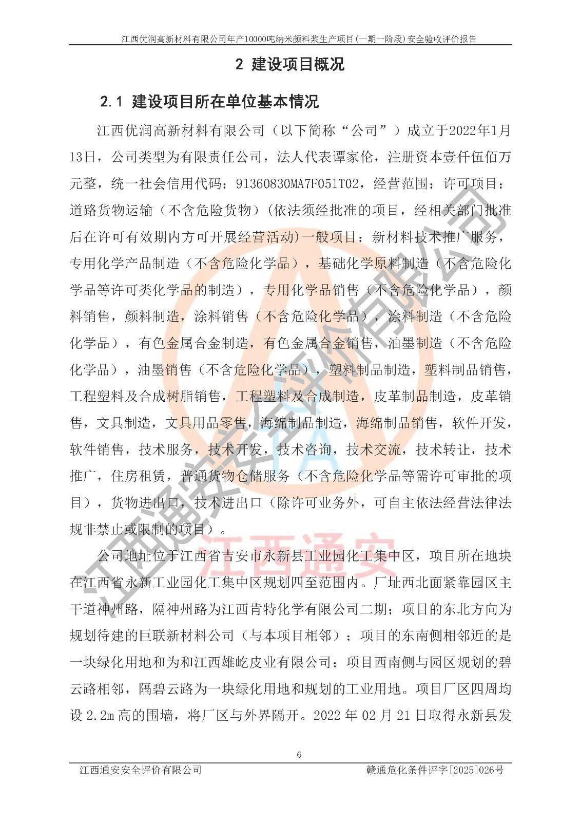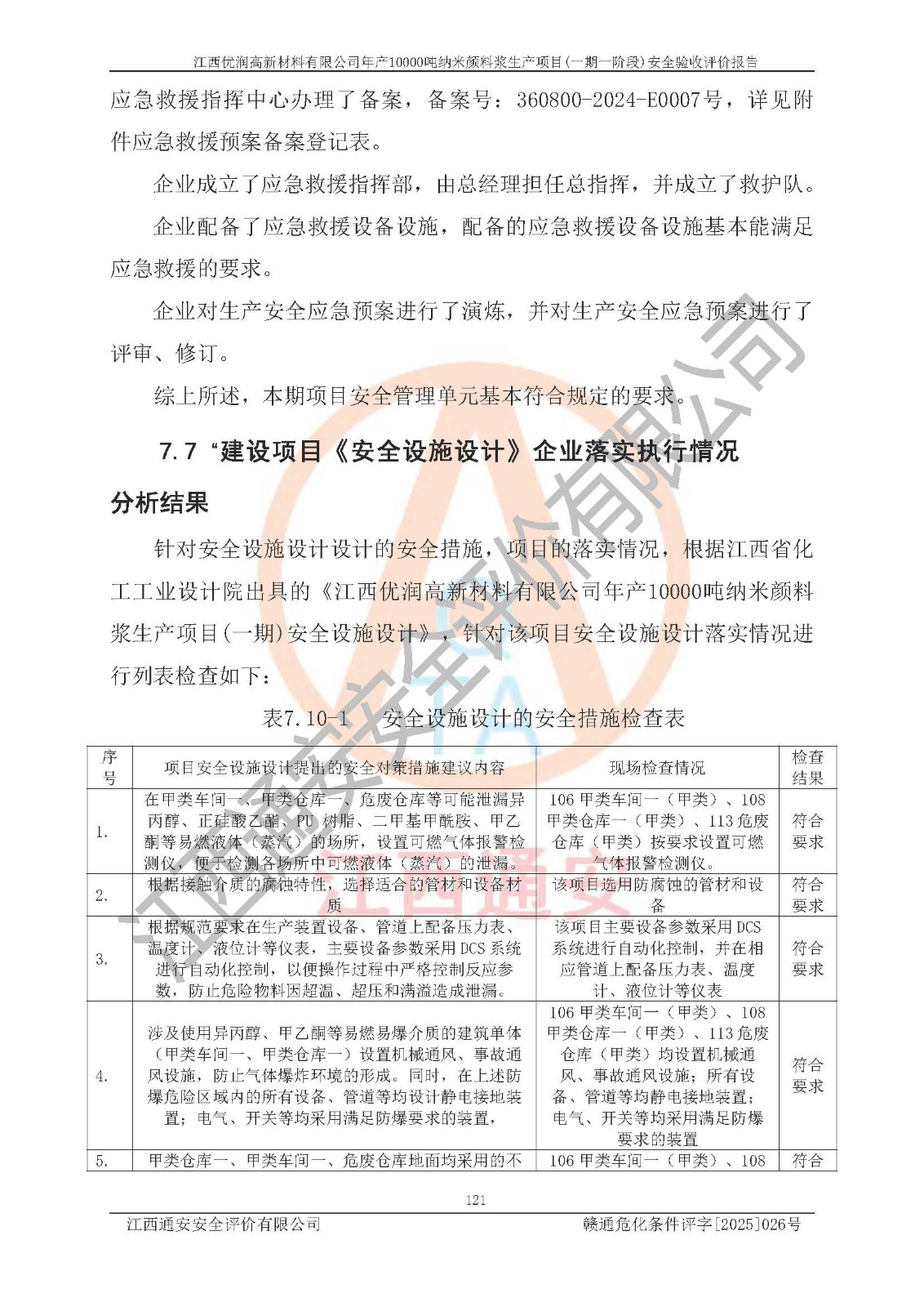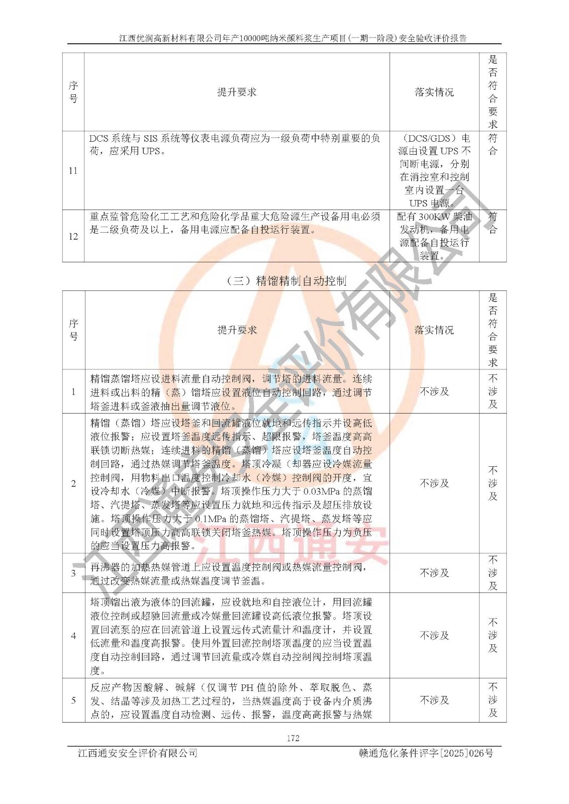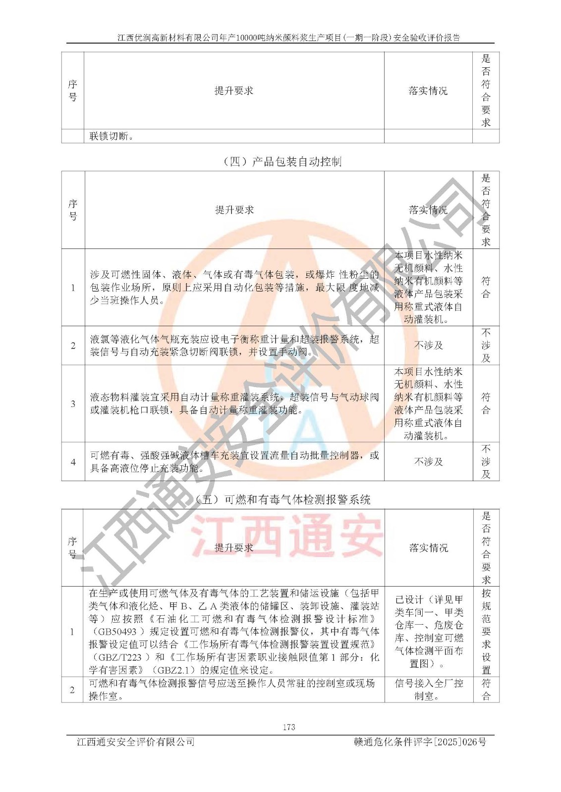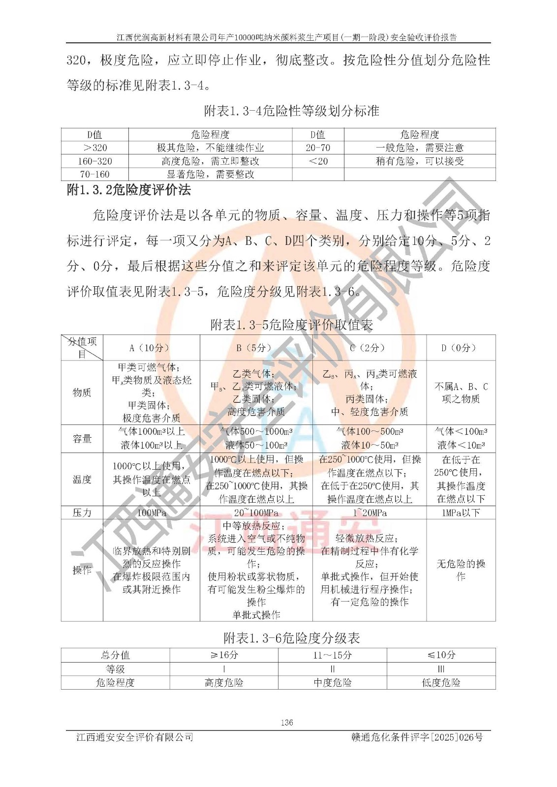 評(píng)價(jià)報(bào)告名稱(chēng) | 江西優(yōu)潤(rùn)高新材料有限公司年產(chǎn)10000噸納米顏料漿生產(chǎn)項(xiàng)目(一期一階段)安全驗(yàn)收評(píng)價(jià)報(bào)告 | |||