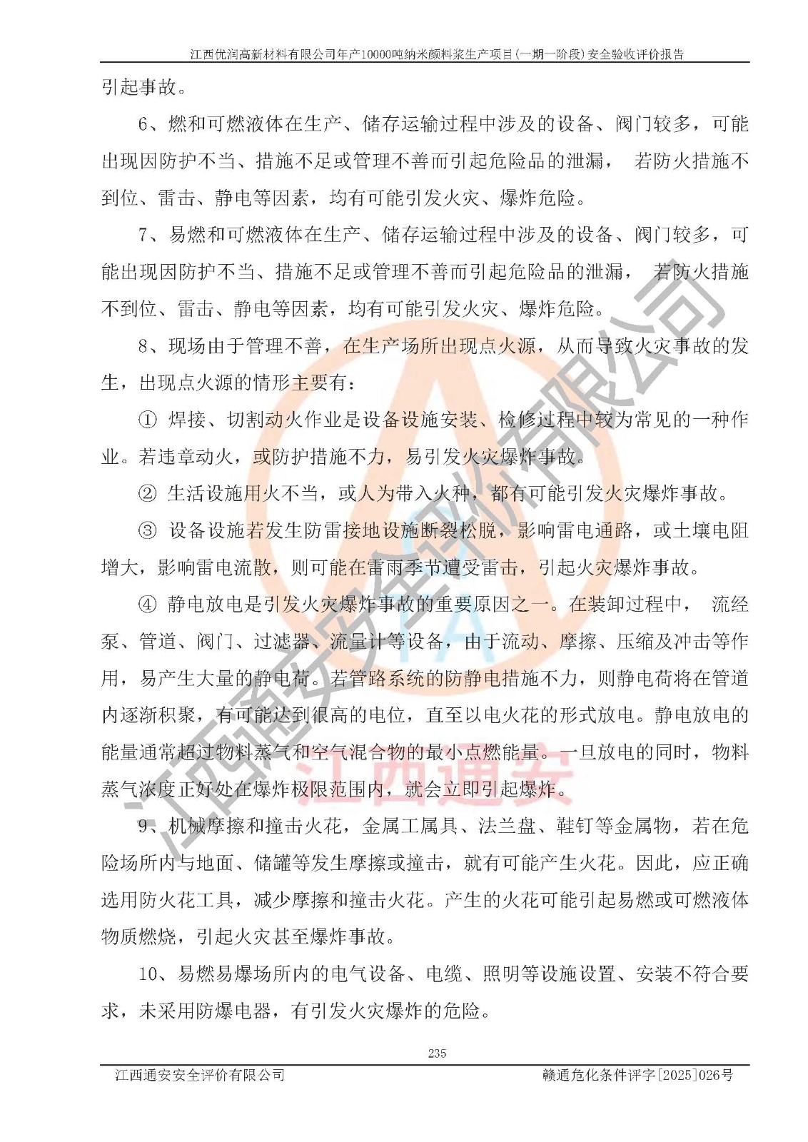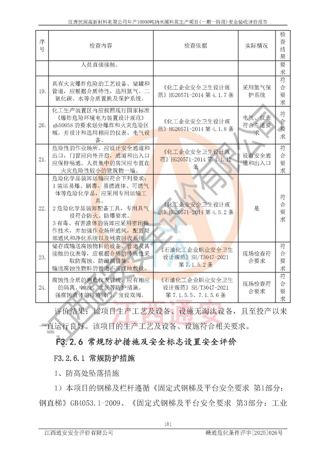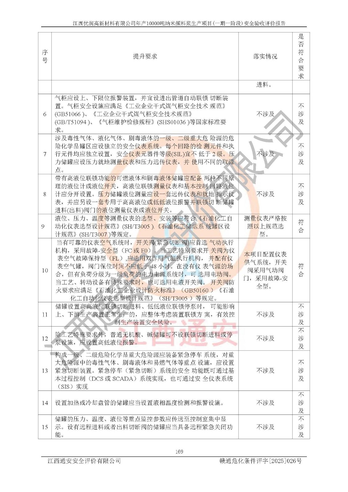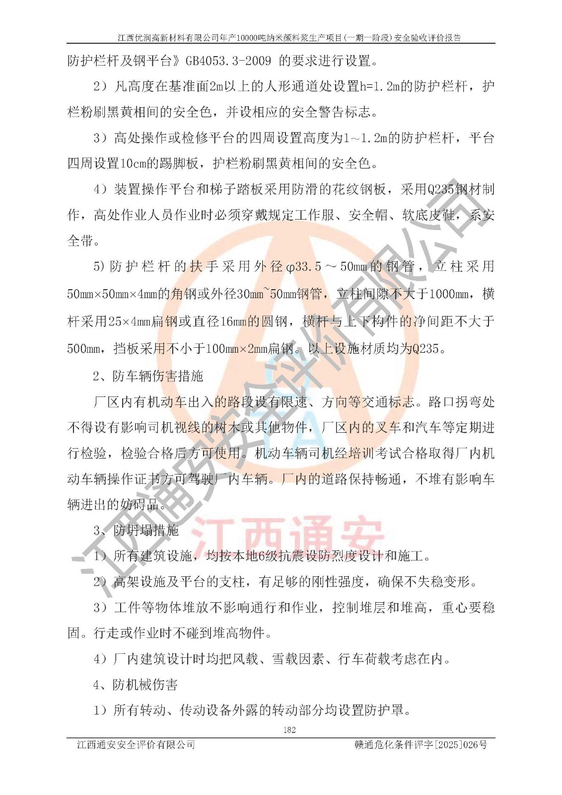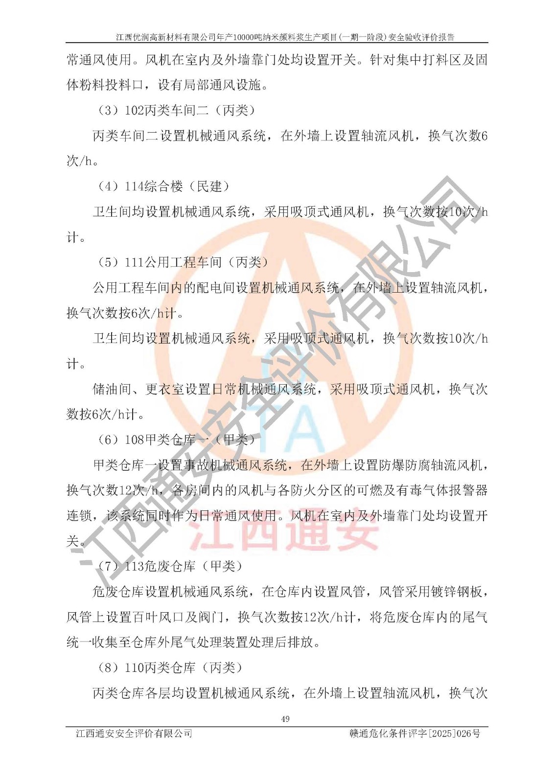評(píng)價(jià)報(bào)告名稱(chēng) | 江西優(yōu)潤(rùn)高新材料有限公司年產(chǎn)10000噸納米顏料漿生產(chǎn)項(xiàng)目(一期一階段)安全驗(yàn)收評(píng)價(jià)報(bào)告 | |||