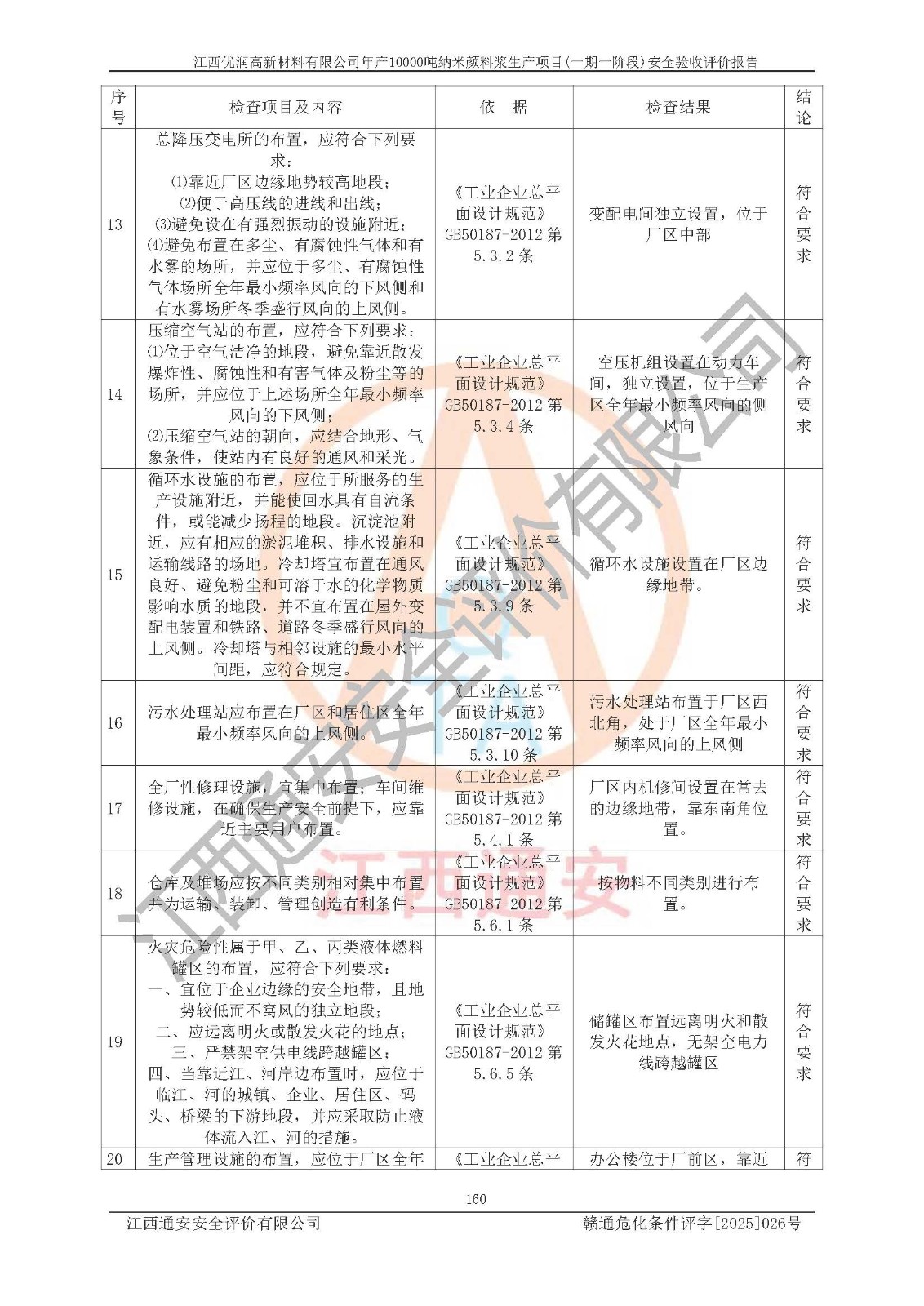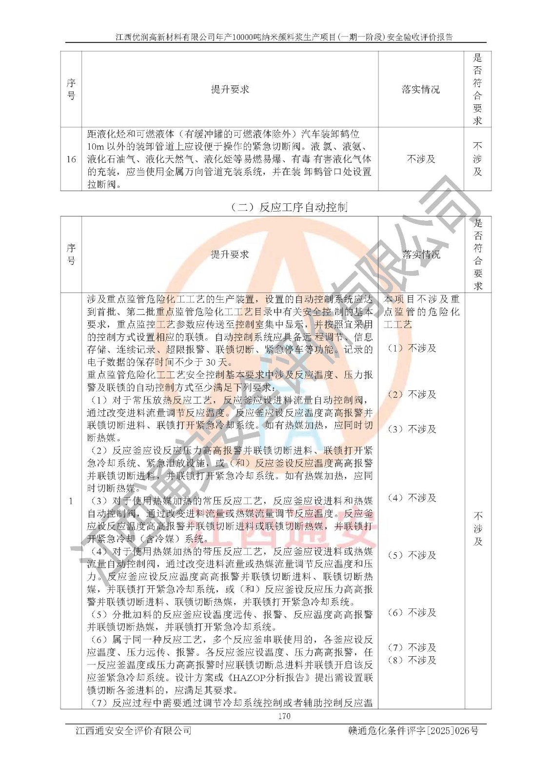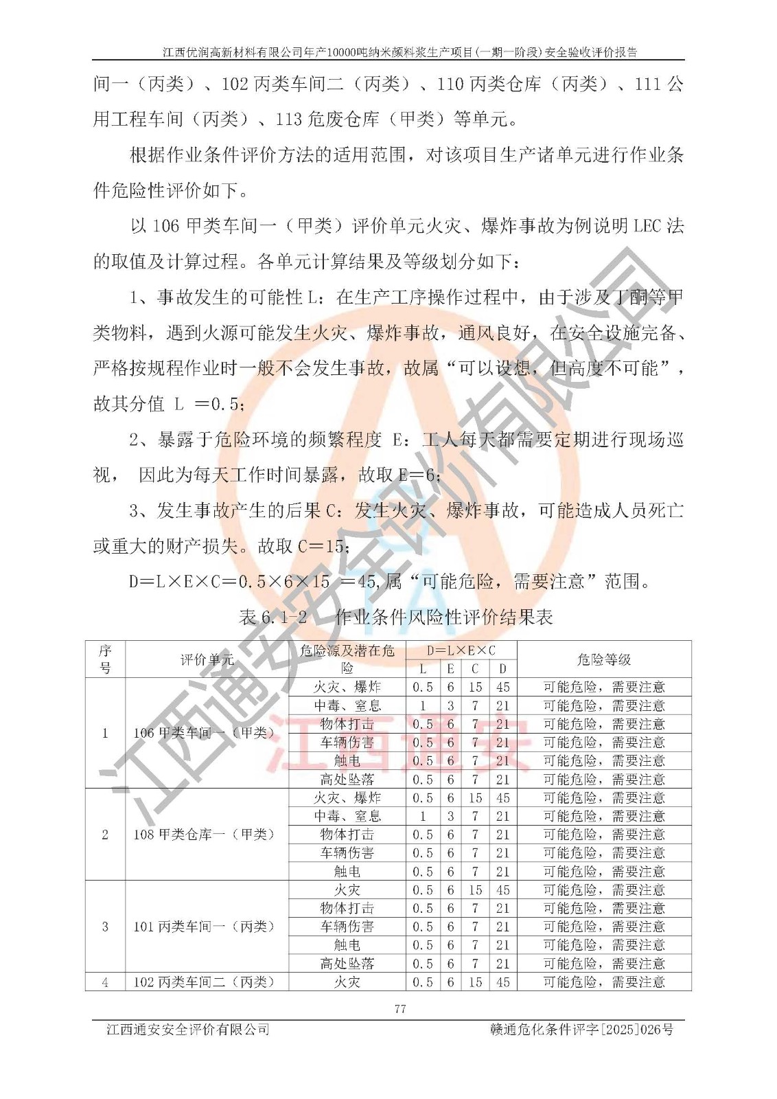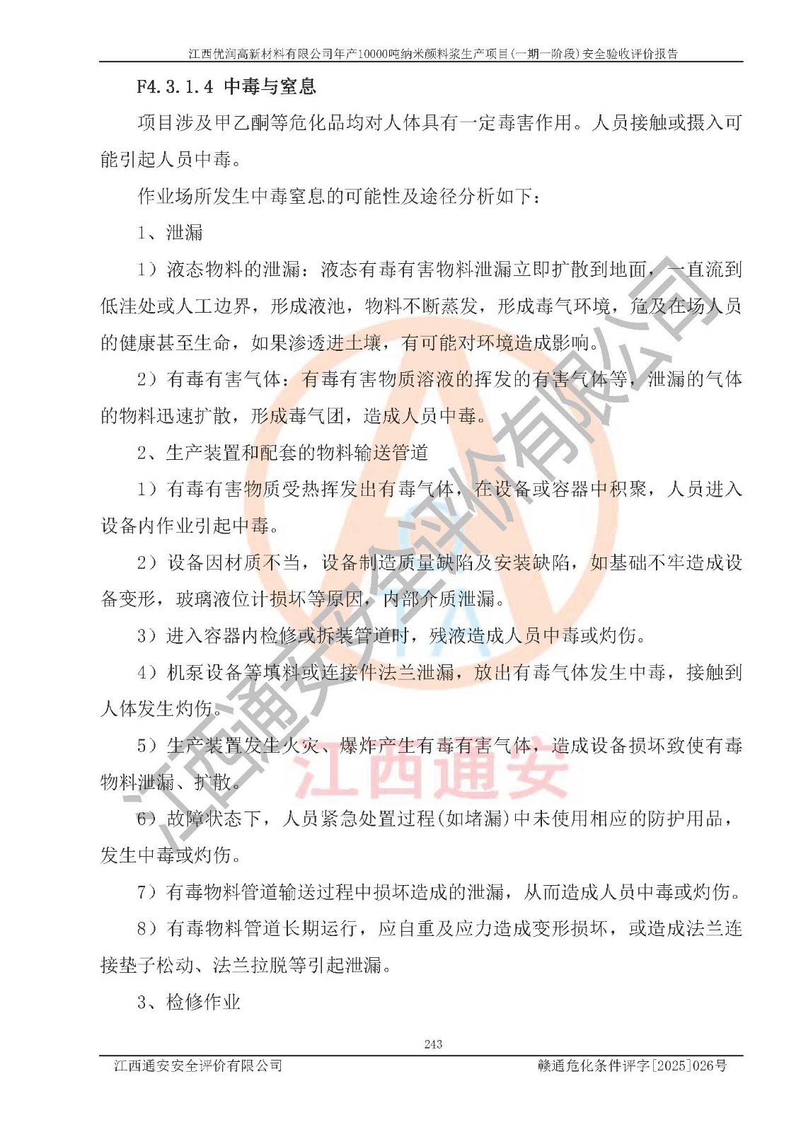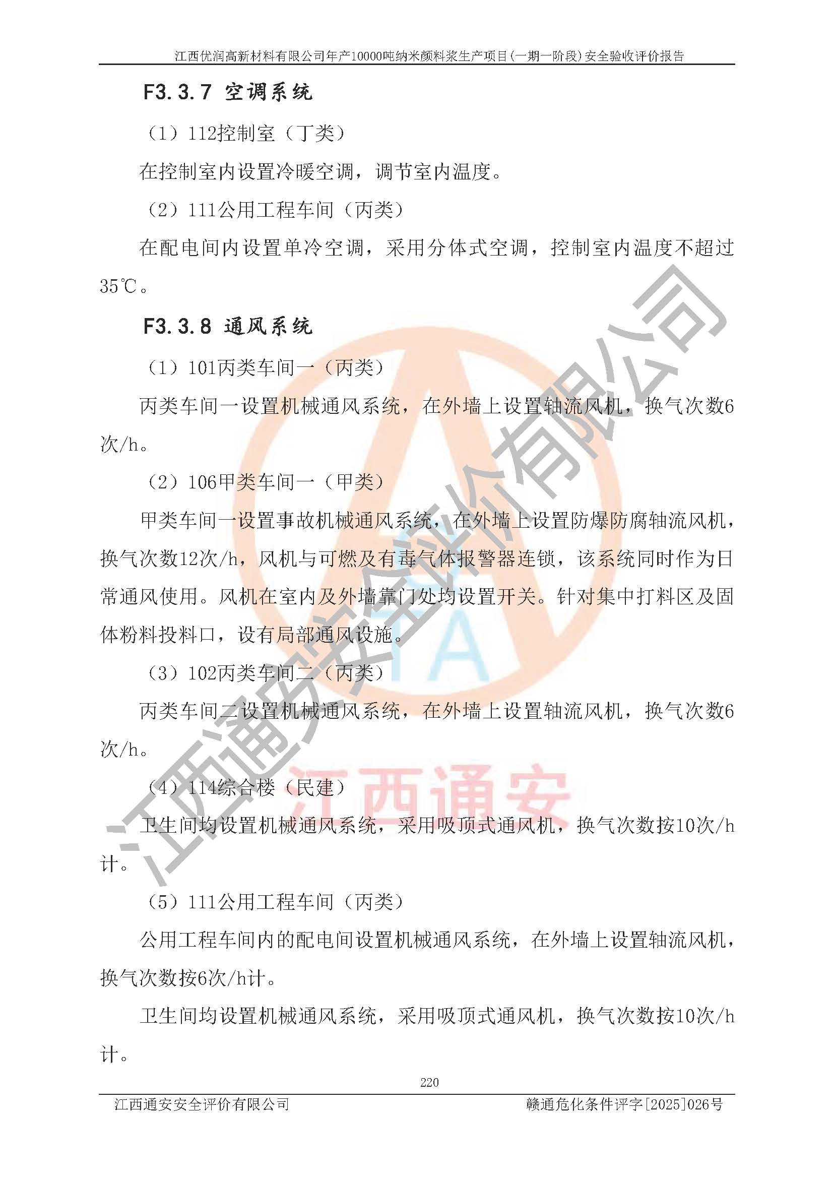 評(píng)價(jià)報(bào)告名稱(chēng) | 江西優(yōu)潤(rùn)高新材料有限公司年產(chǎn)10000噸納米顏料漿生產(chǎn)項(xiàng)目(一期一階段)安全驗(yàn)收評(píng)價(jià)報(bào)告 | |||