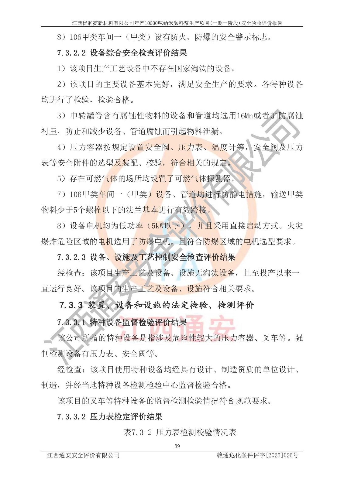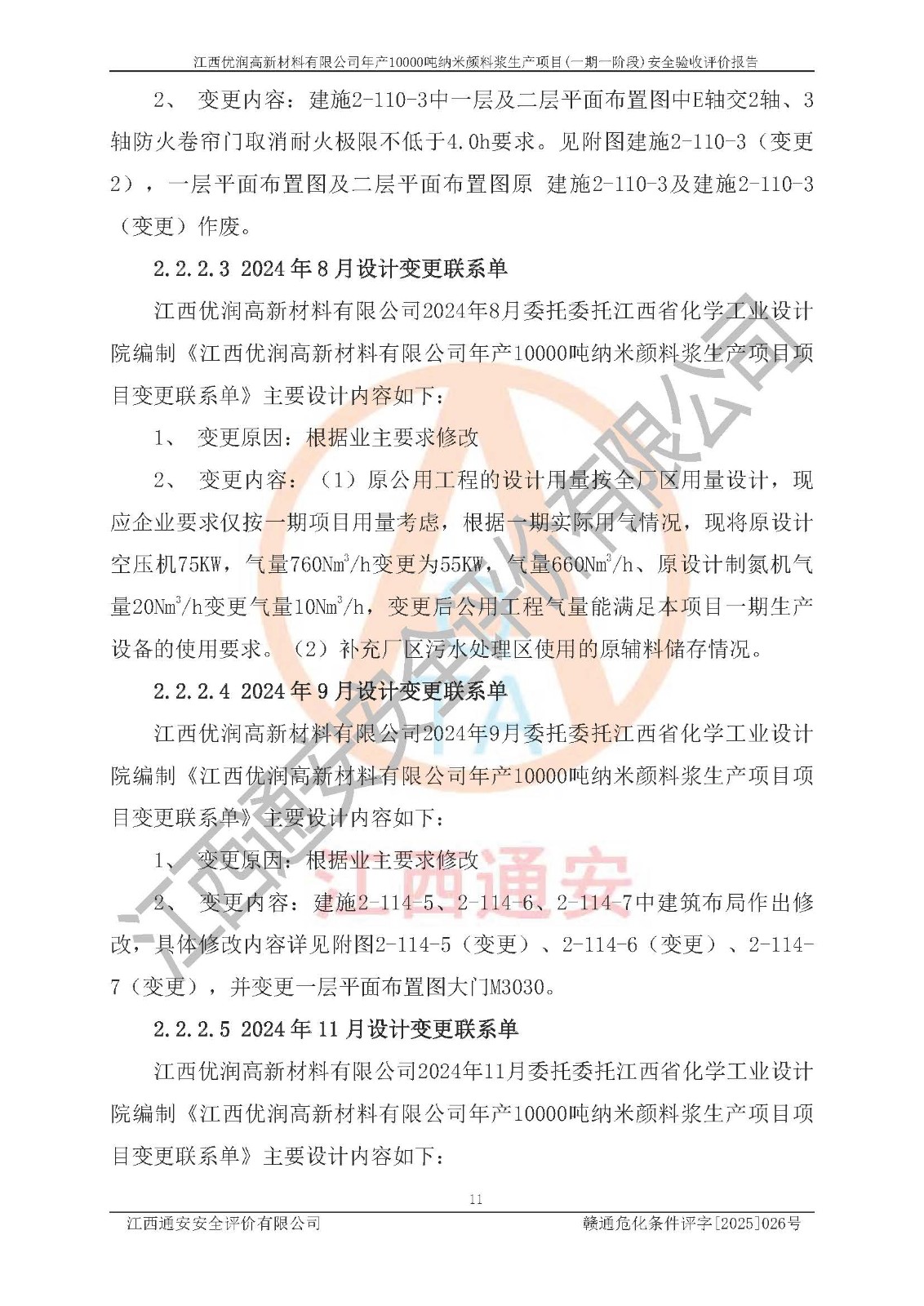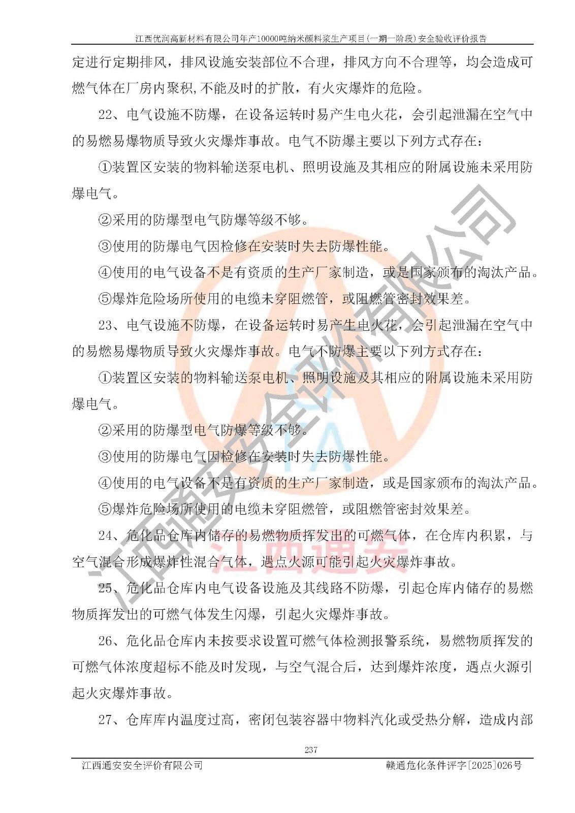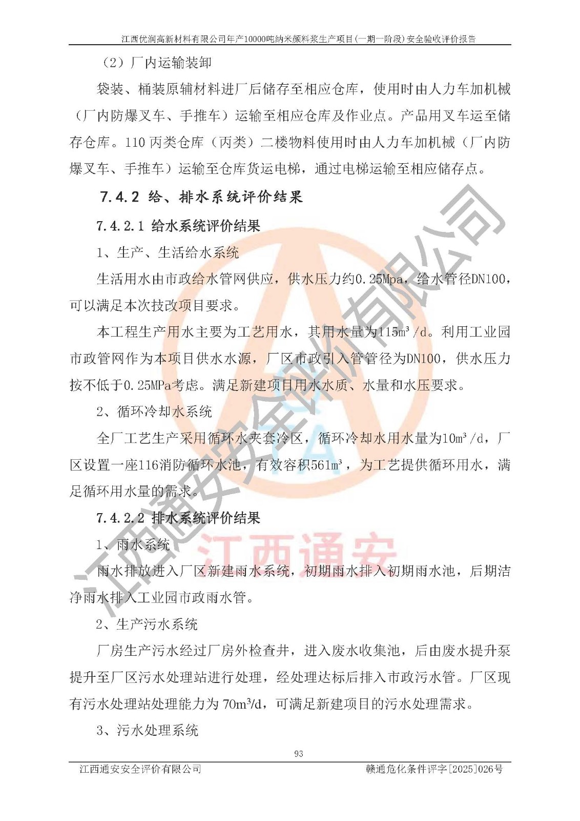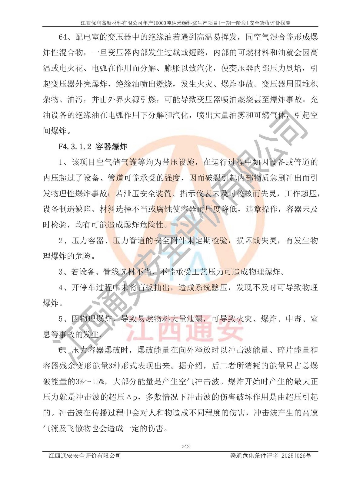 評(píng)價(jià)報(bào)告名稱(chēng) | 江西優(yōu)潤(rùn)高新材料有限公司年產(chǎn)10000噸納米顏料漿生產(chǎn)項(xiàng)目(一期一階段)安全驗(yàn)收評(píng)價(jià)報(bào)告 | |||