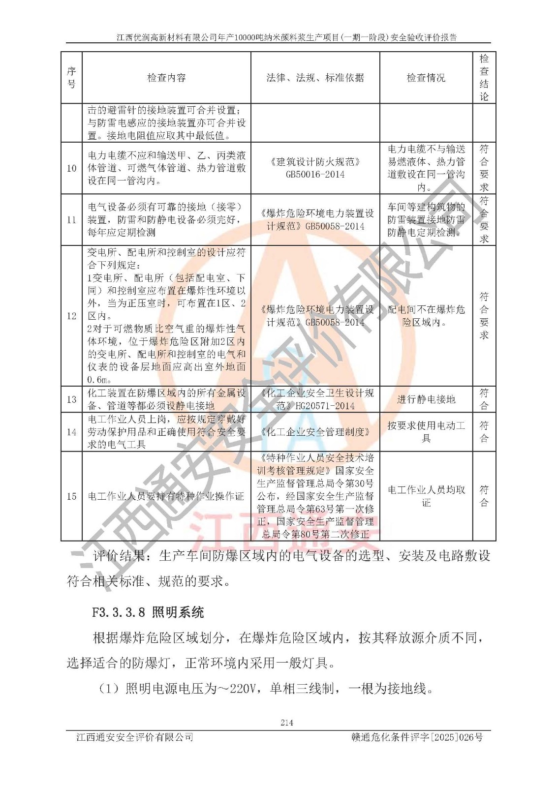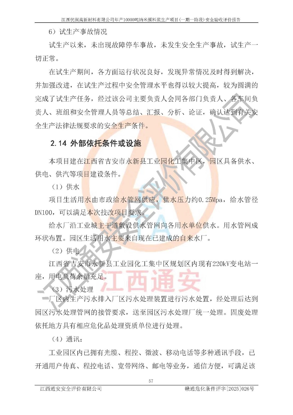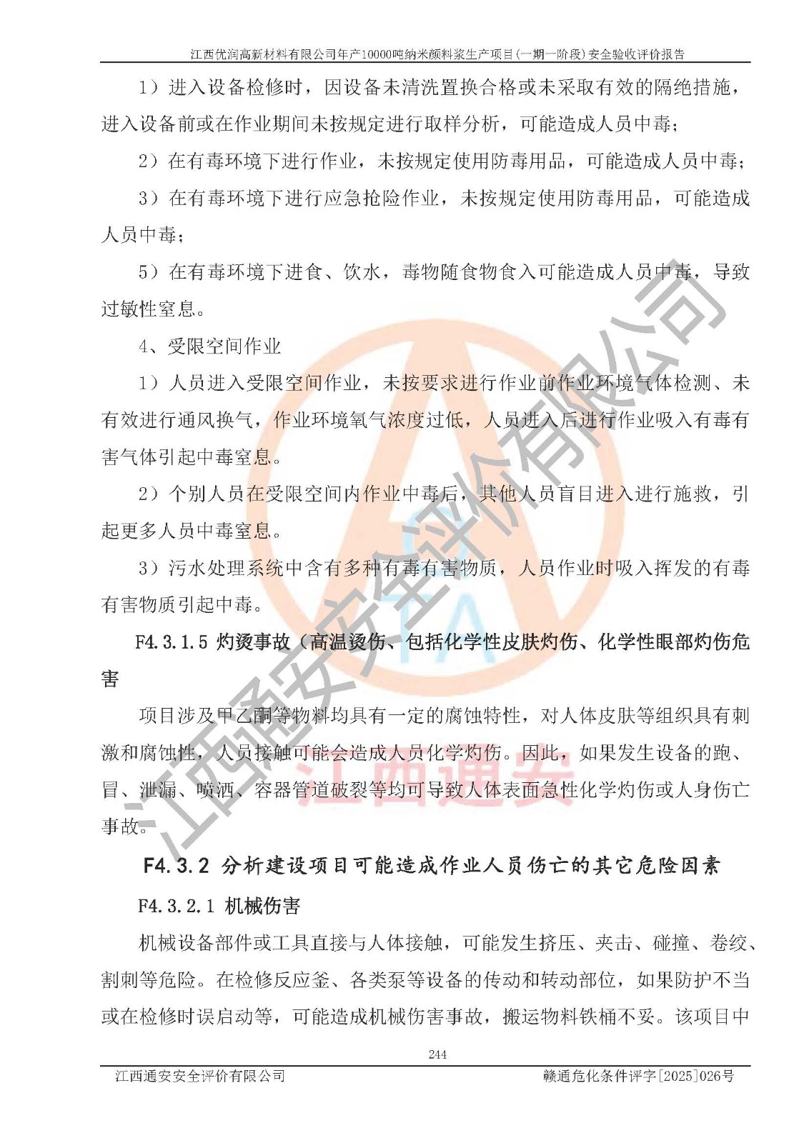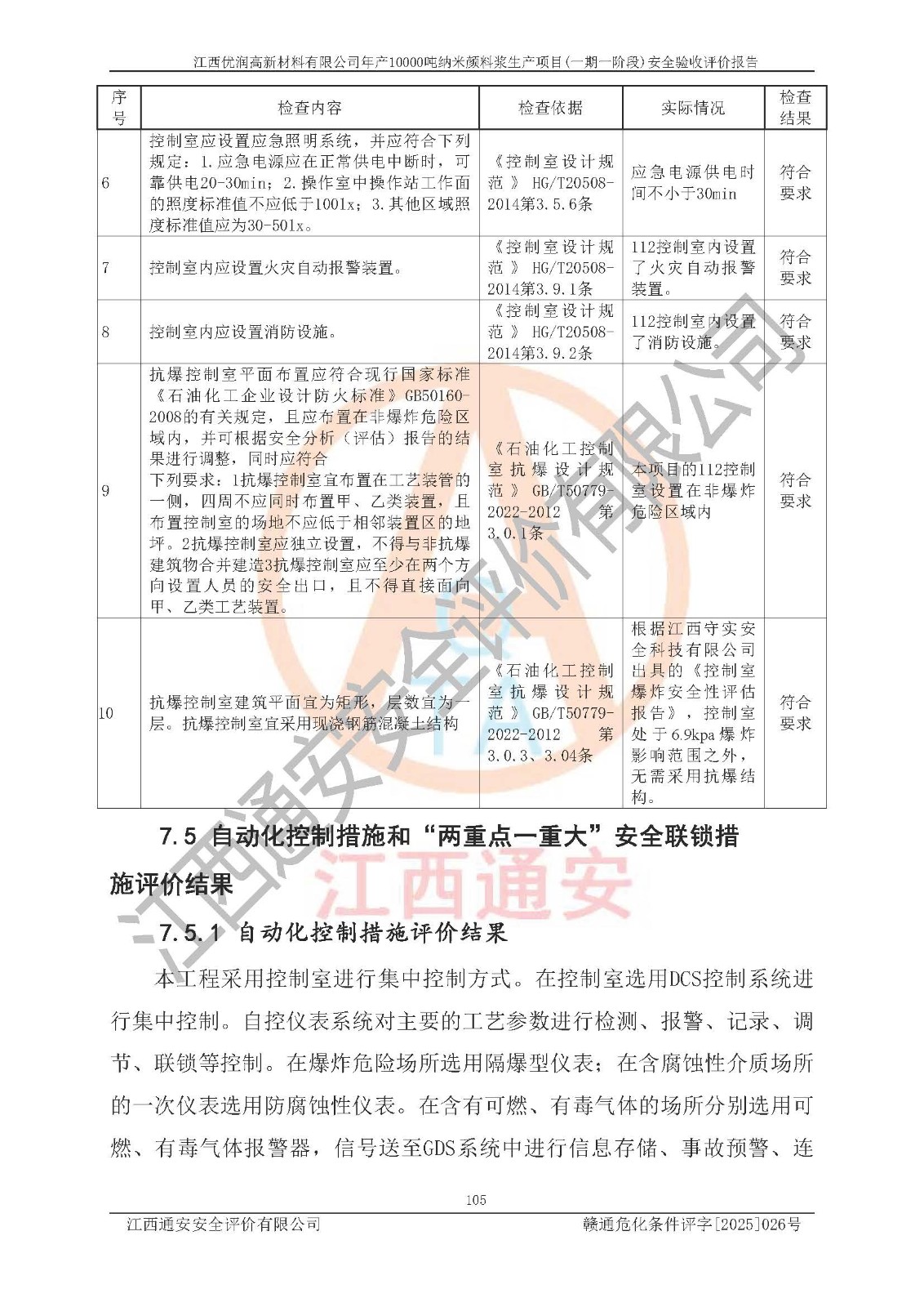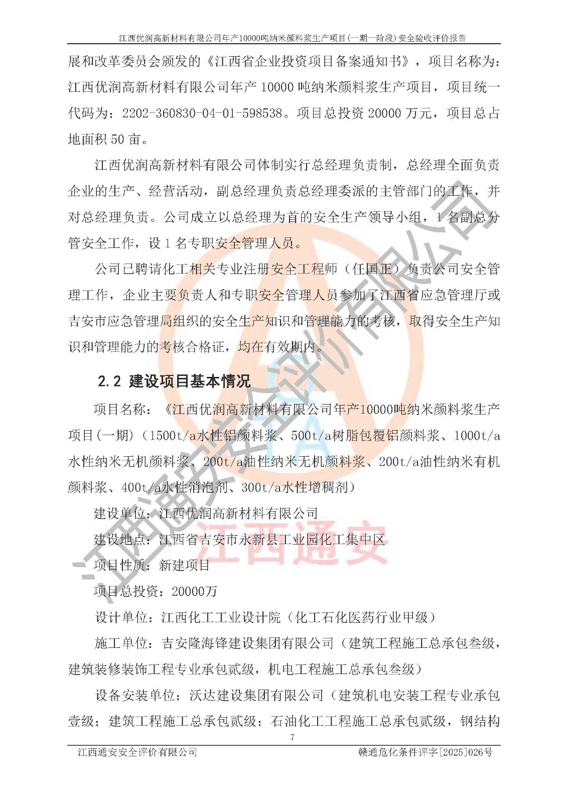 評(píng)價(jià)報(bào)告名稱(chēng) | 江西優(yōu)潤(rùn)高新材料有限公司年產(chǎn)10000噸納米顏料漿生產(chǎn)項(xiàng)目(一期一階段)安全驗(yàn)收評(píng)價(jià)報(bào)告 | |||