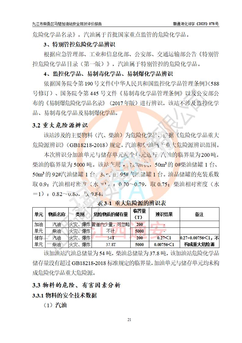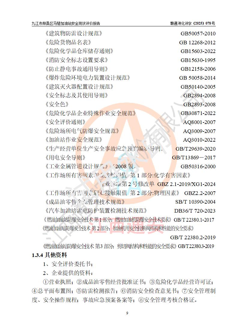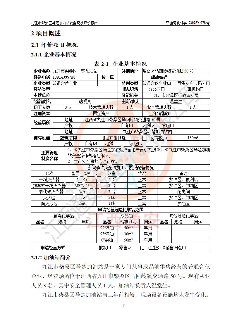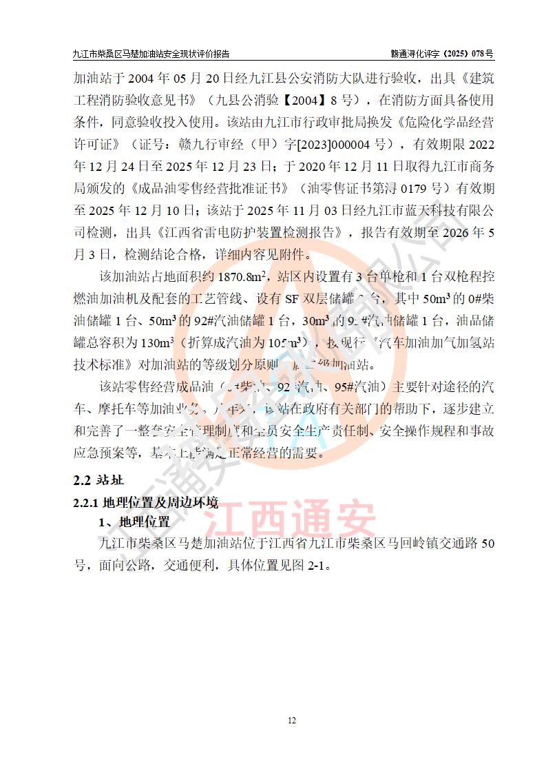 評(píng)價(jià)報(bào)告名稱(chēng) | 九江市柴桑區(qū)馬楚加油站安全現(xiàn)狀評(píng)價(jià)報(bào)告 | |||